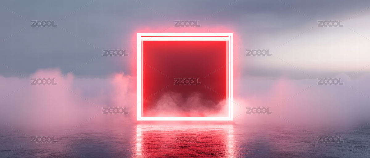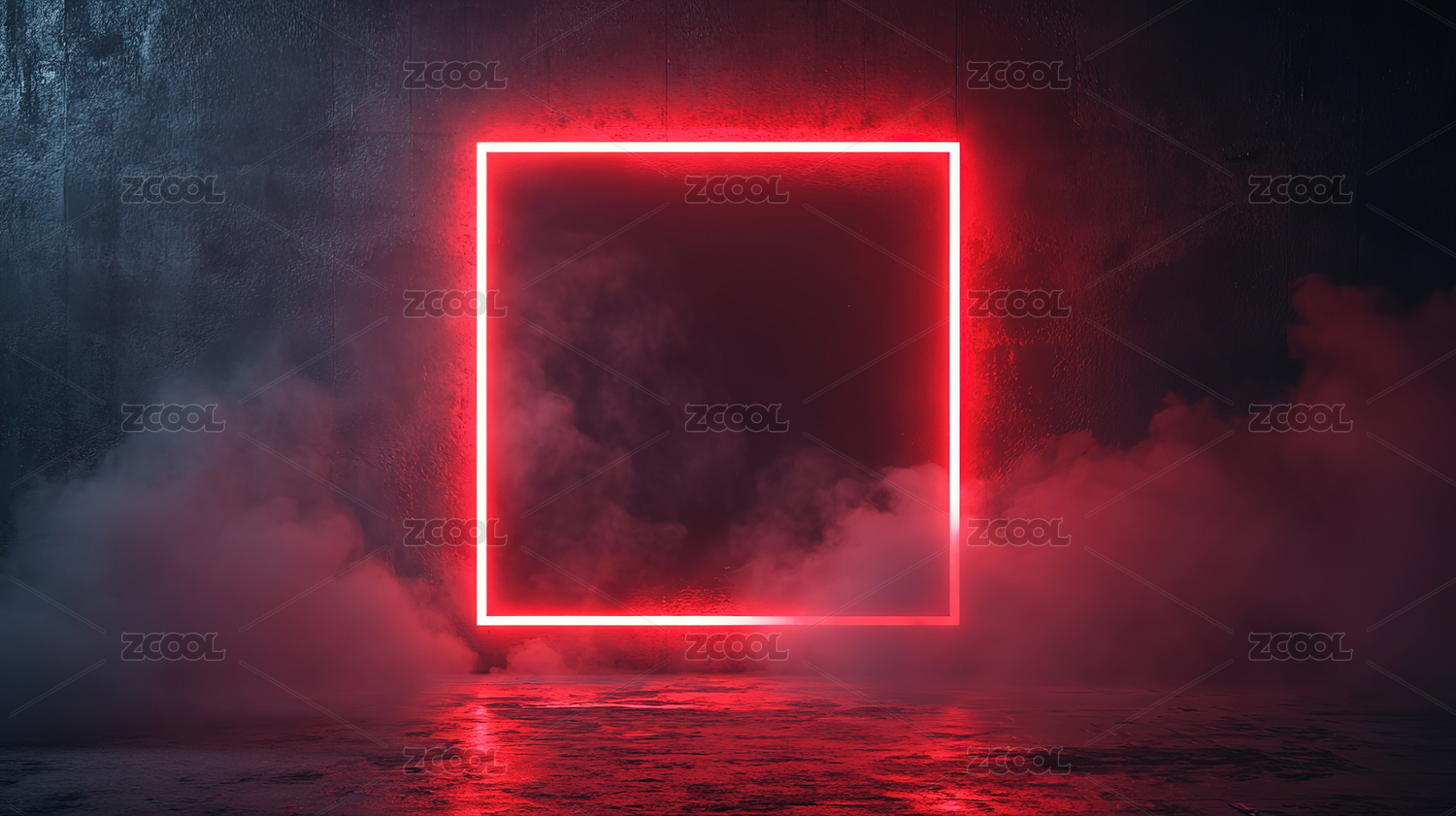霓虹方框与云雾交织 梦幻迷离光影氛围