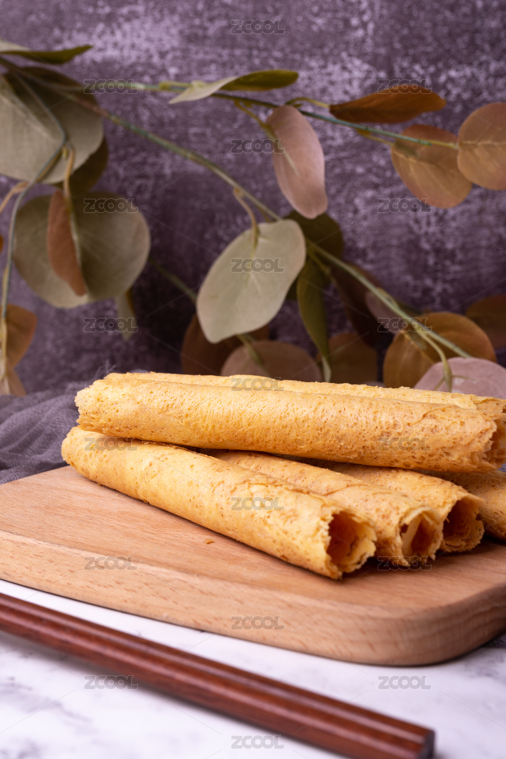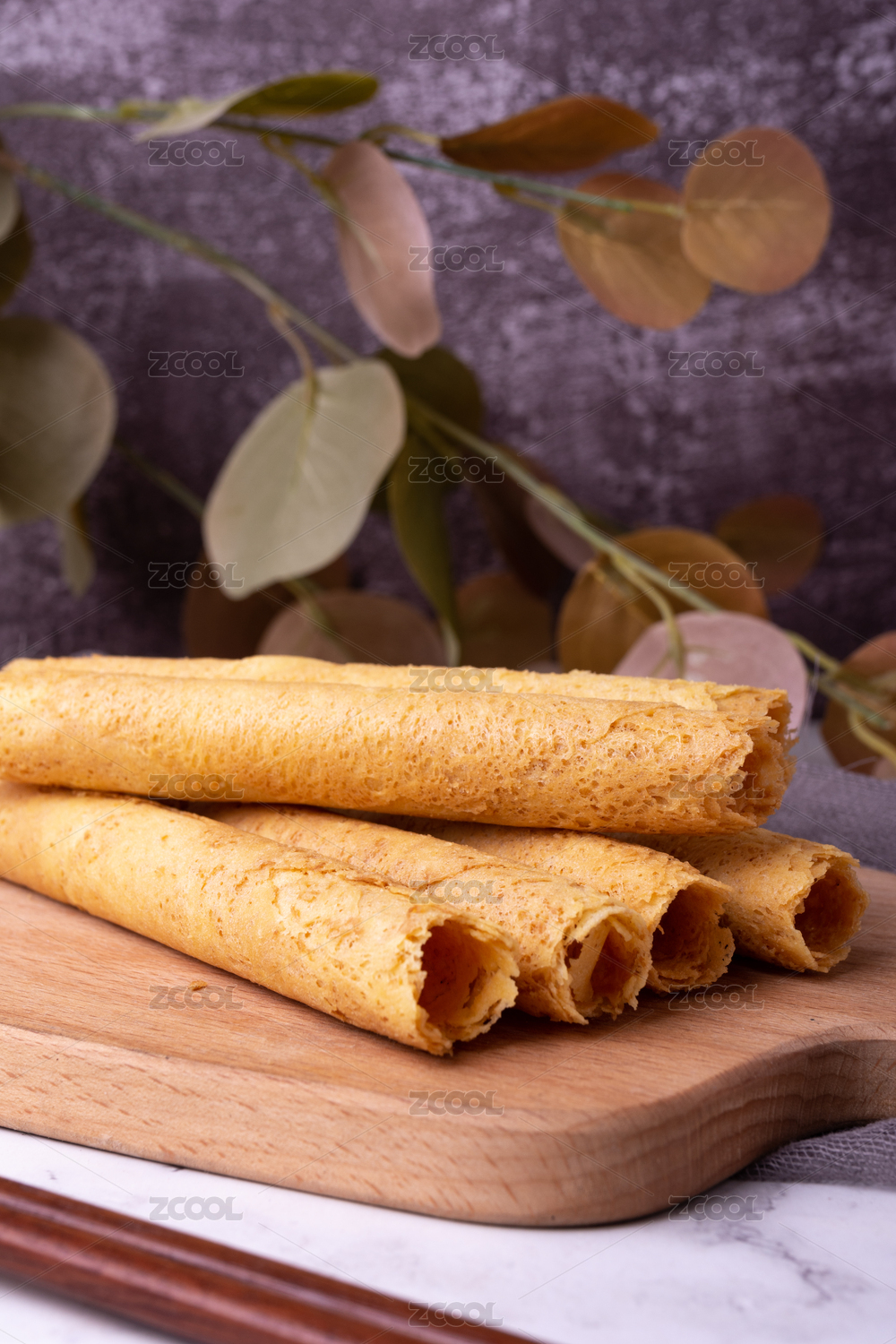 放在木盘上的蛋卷