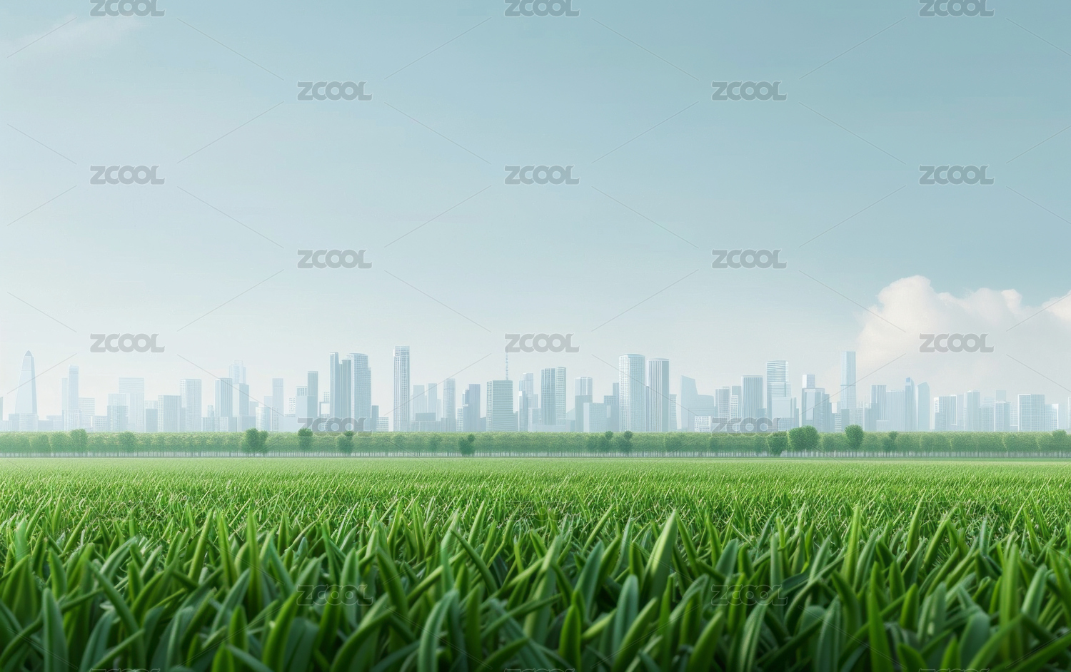 绿色田野与城市天际线