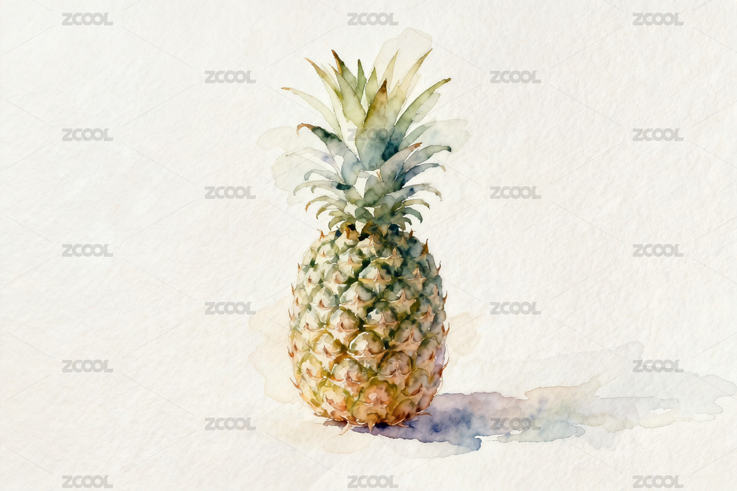 水彩画中的菠萝静物