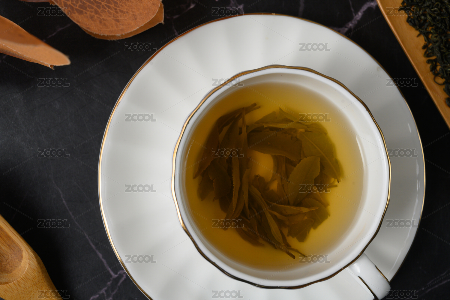 桌面上的杯子里的甘甜可口的高山绿茶