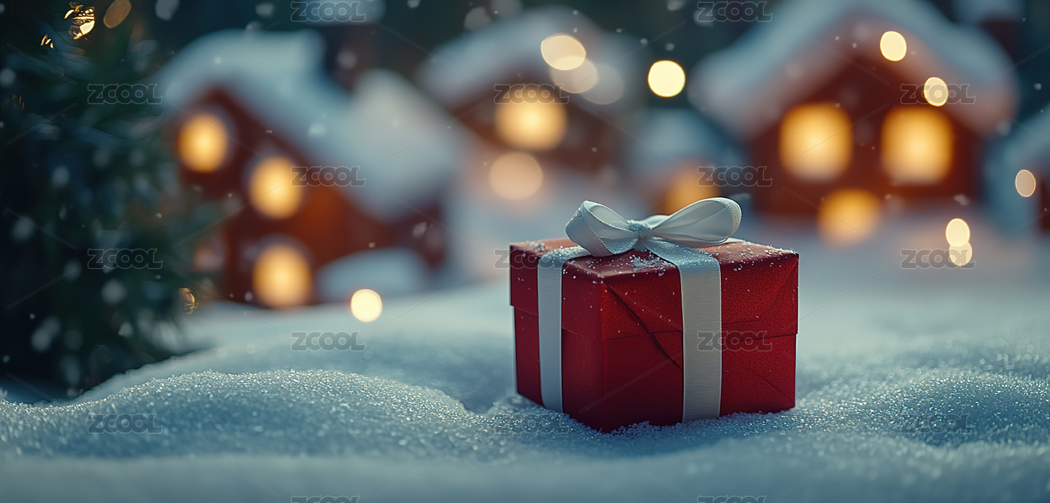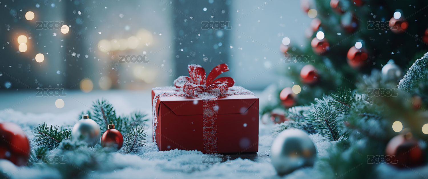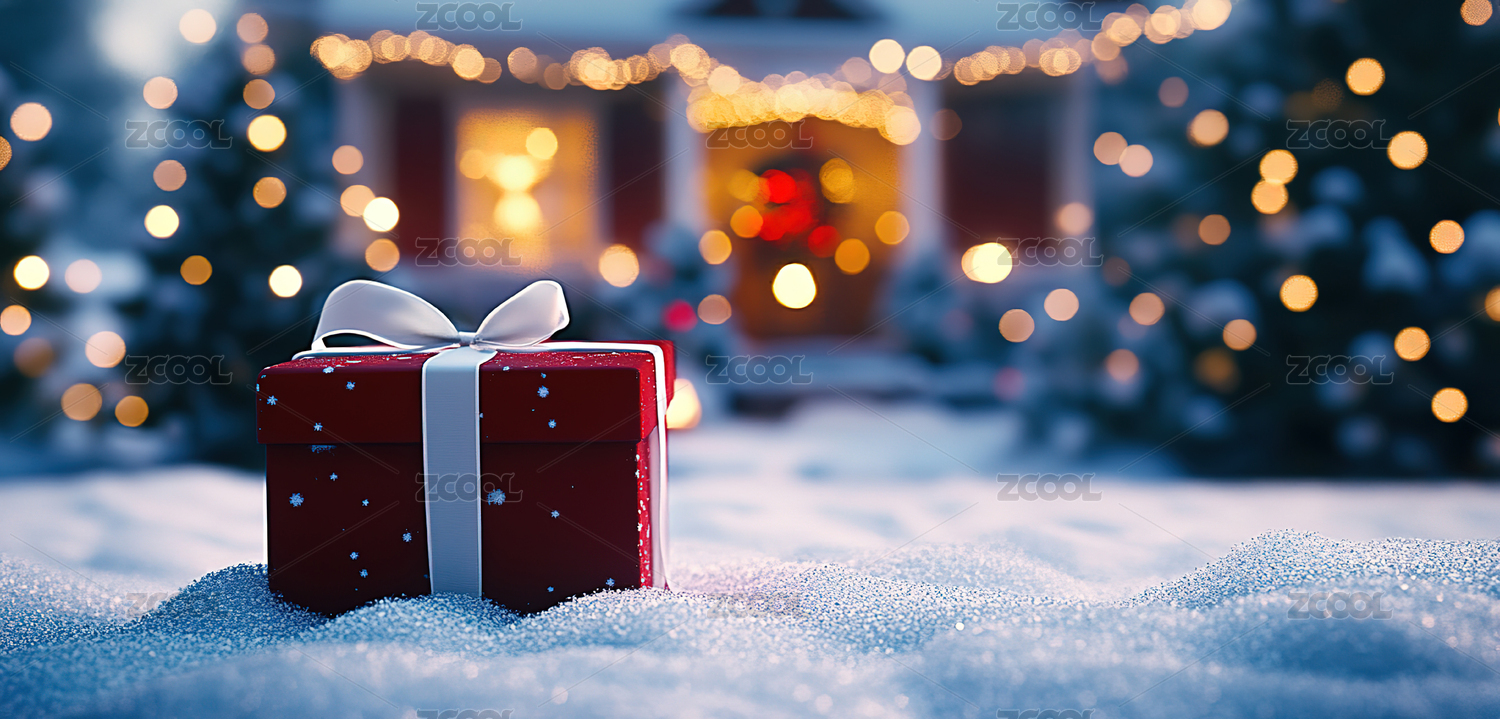 圣诞节冬日雪景圣诞树圣诞礼物电商背景