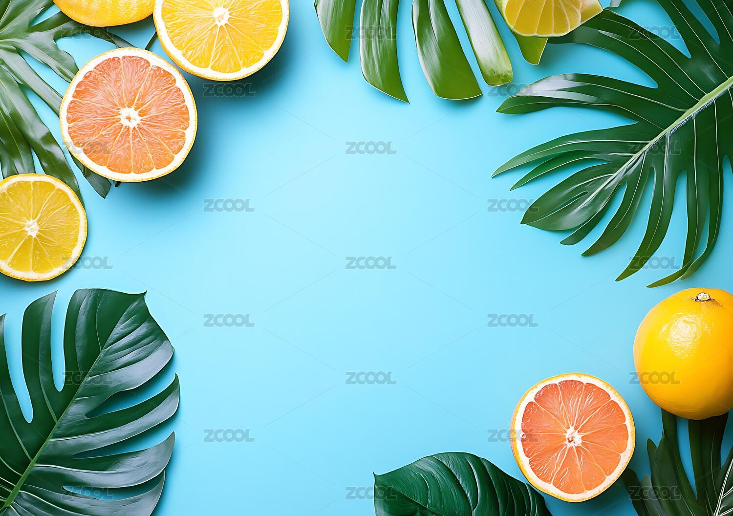 热带树叶橙子背景
