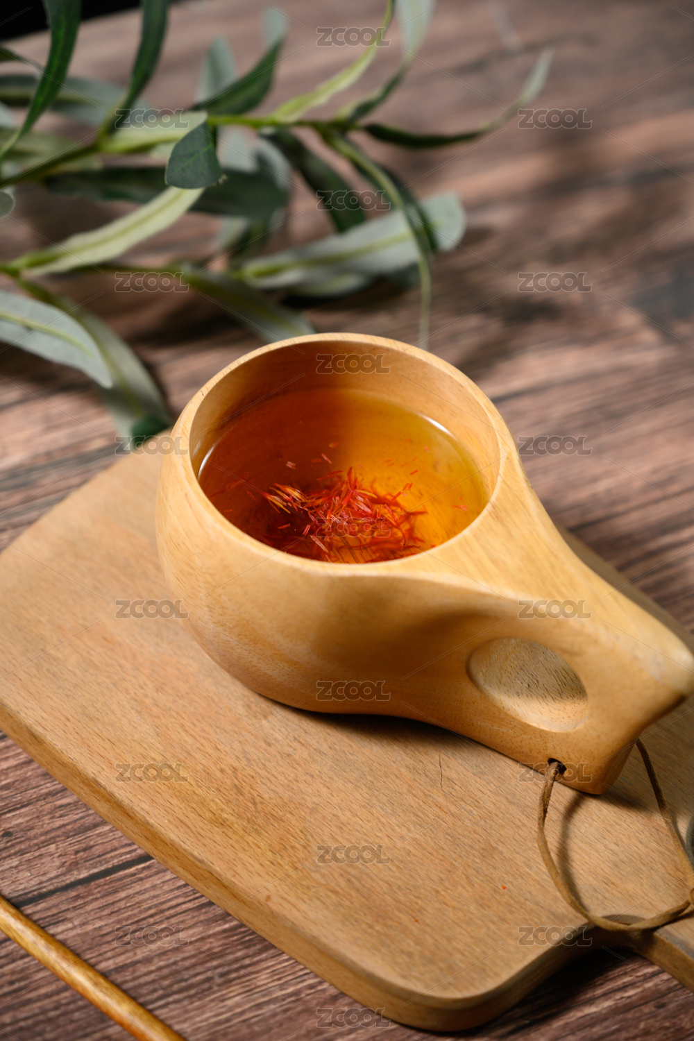 桌面上的杯子里的甘甜可口的山茱萸茶