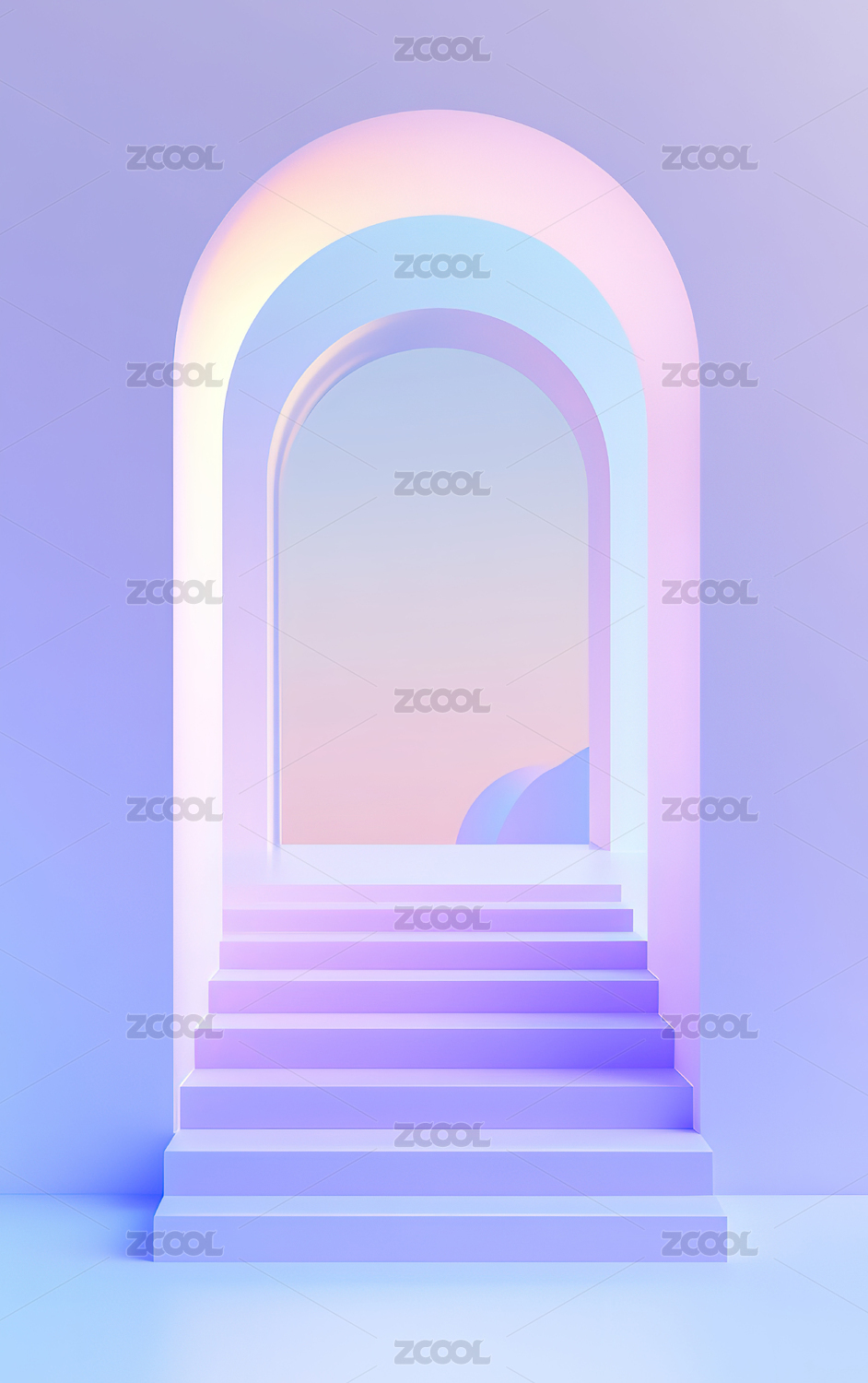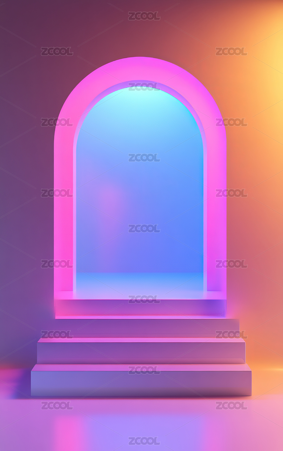 霓虹色调拱形通道