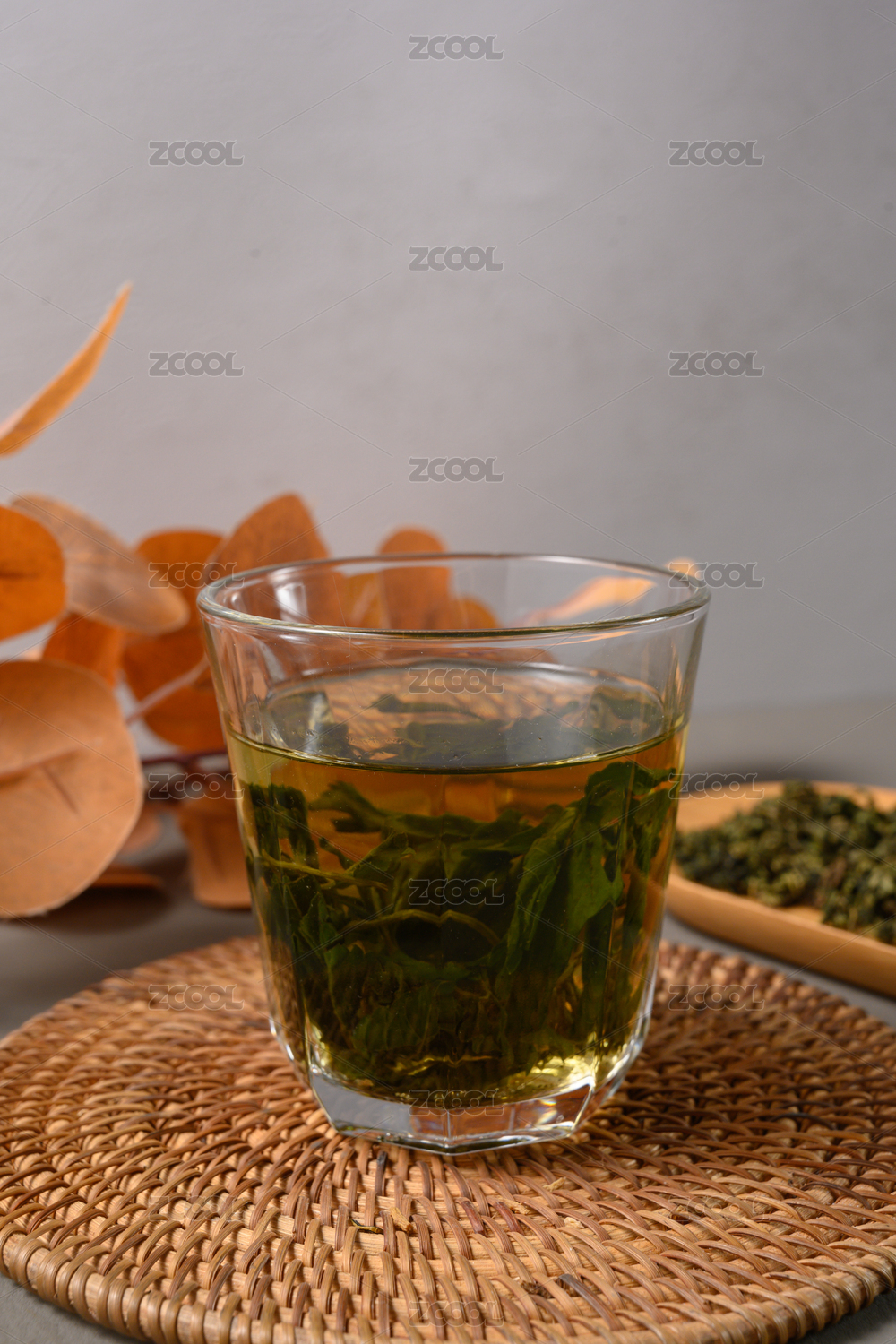 桌面上的杯子里的甘甜可口的绞股蓝茶