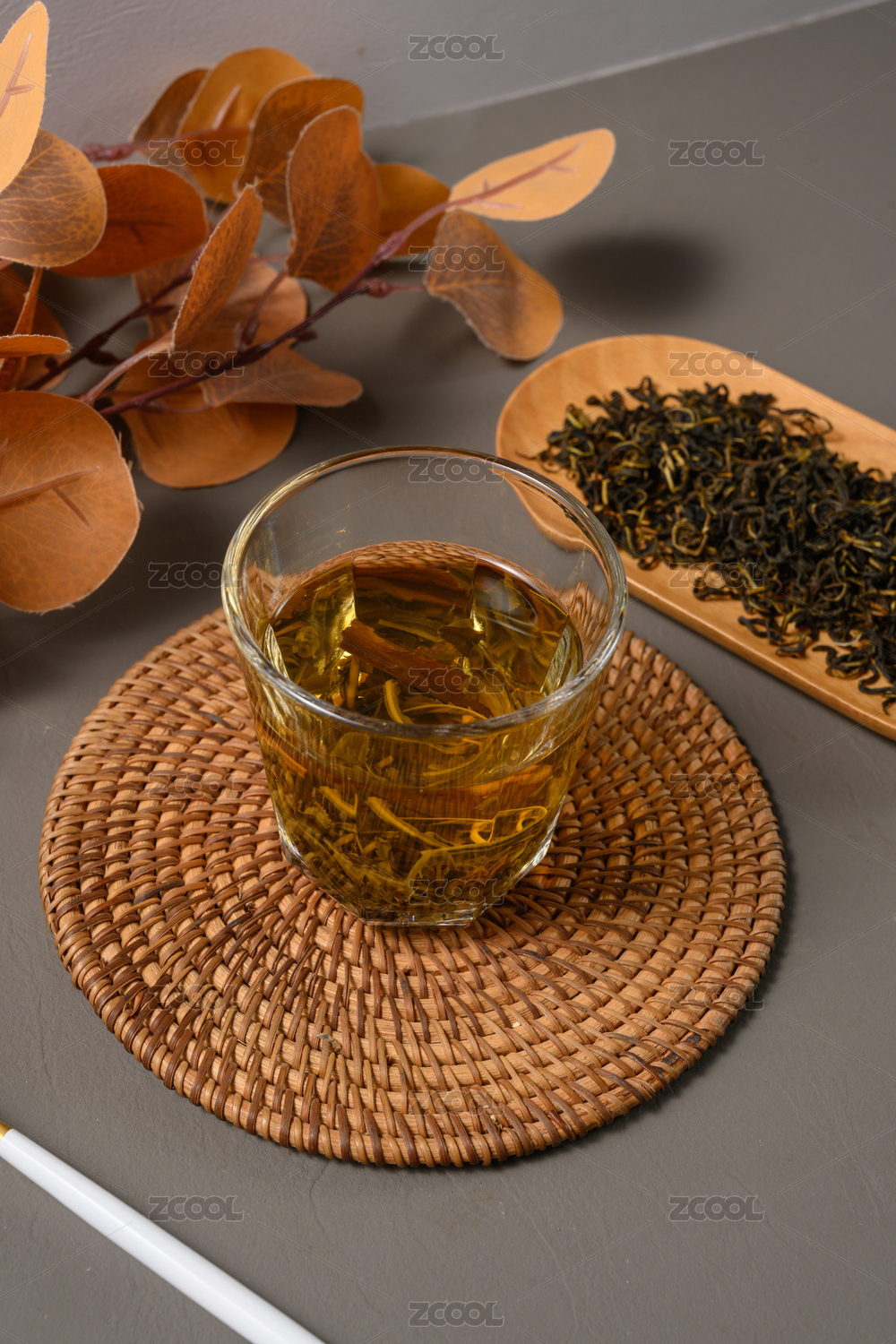 桌面上的杯子里的甘甜可口的赶黄草茶
