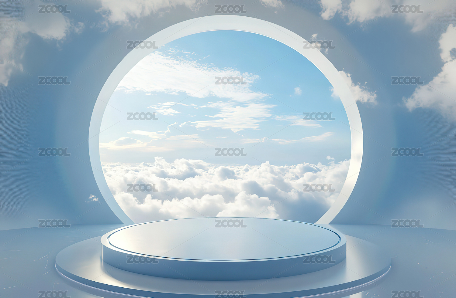 AI数字艺术,现代,人造空间,背景,建筑,汽车广告背景图,简单,三维图形,干净,天空