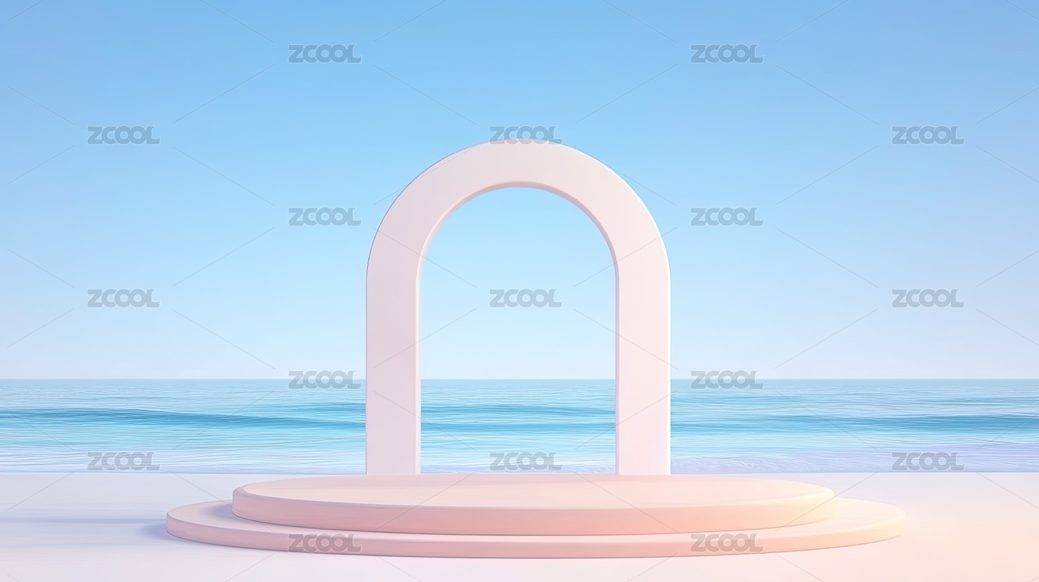 海边拱门商品展台化妆品电商促销背景