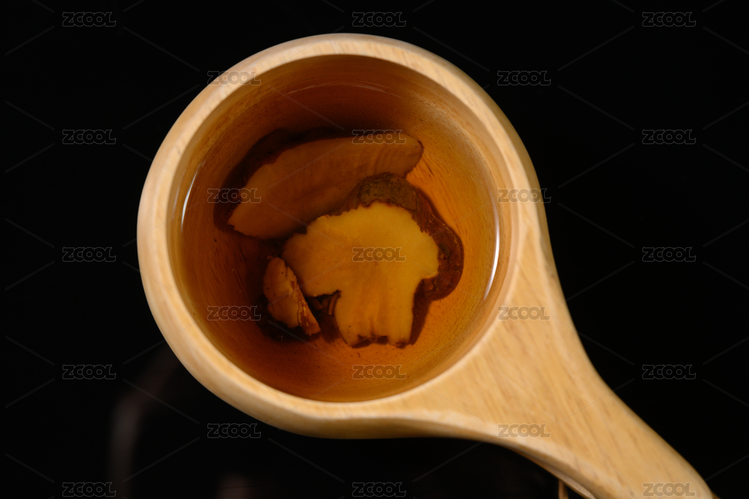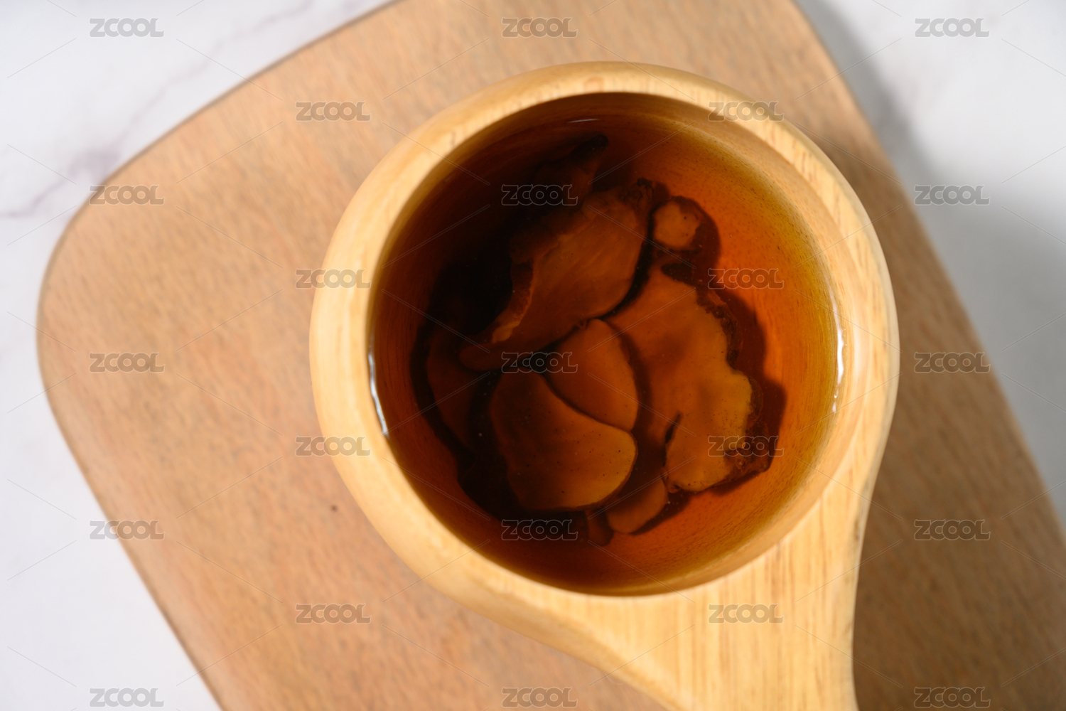 桌面上的杯子里的甘甜可口的红参茶