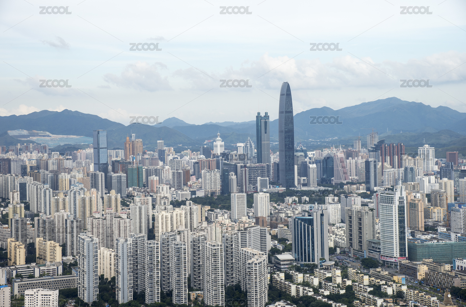 中国广东省深圳城市天际线建筑群高楼大厦景观