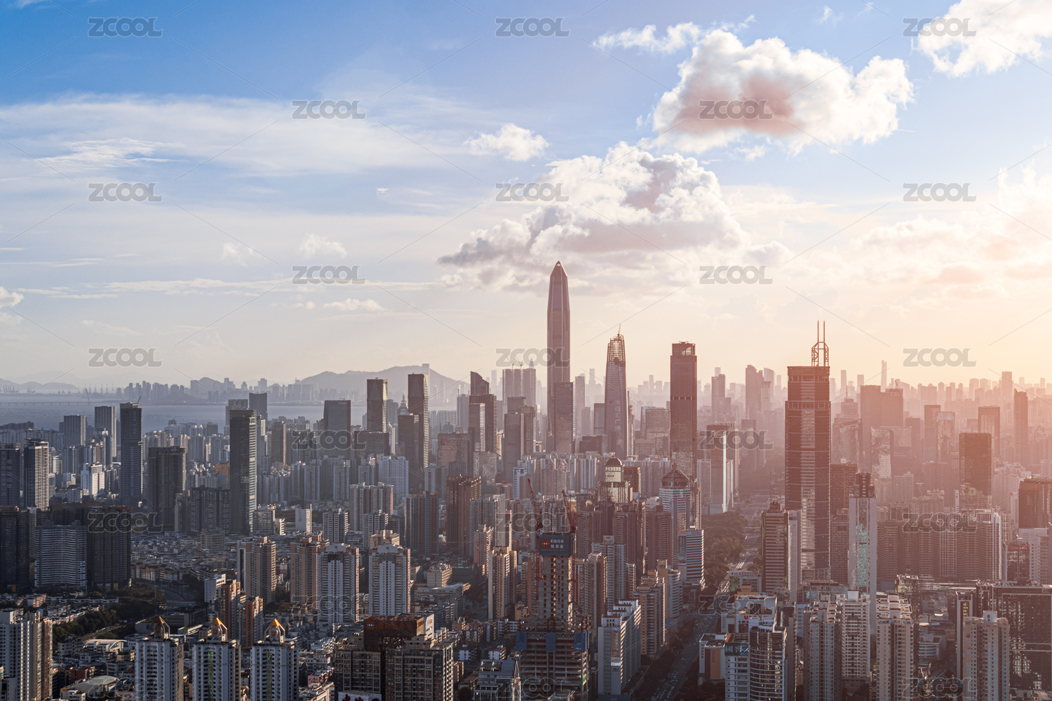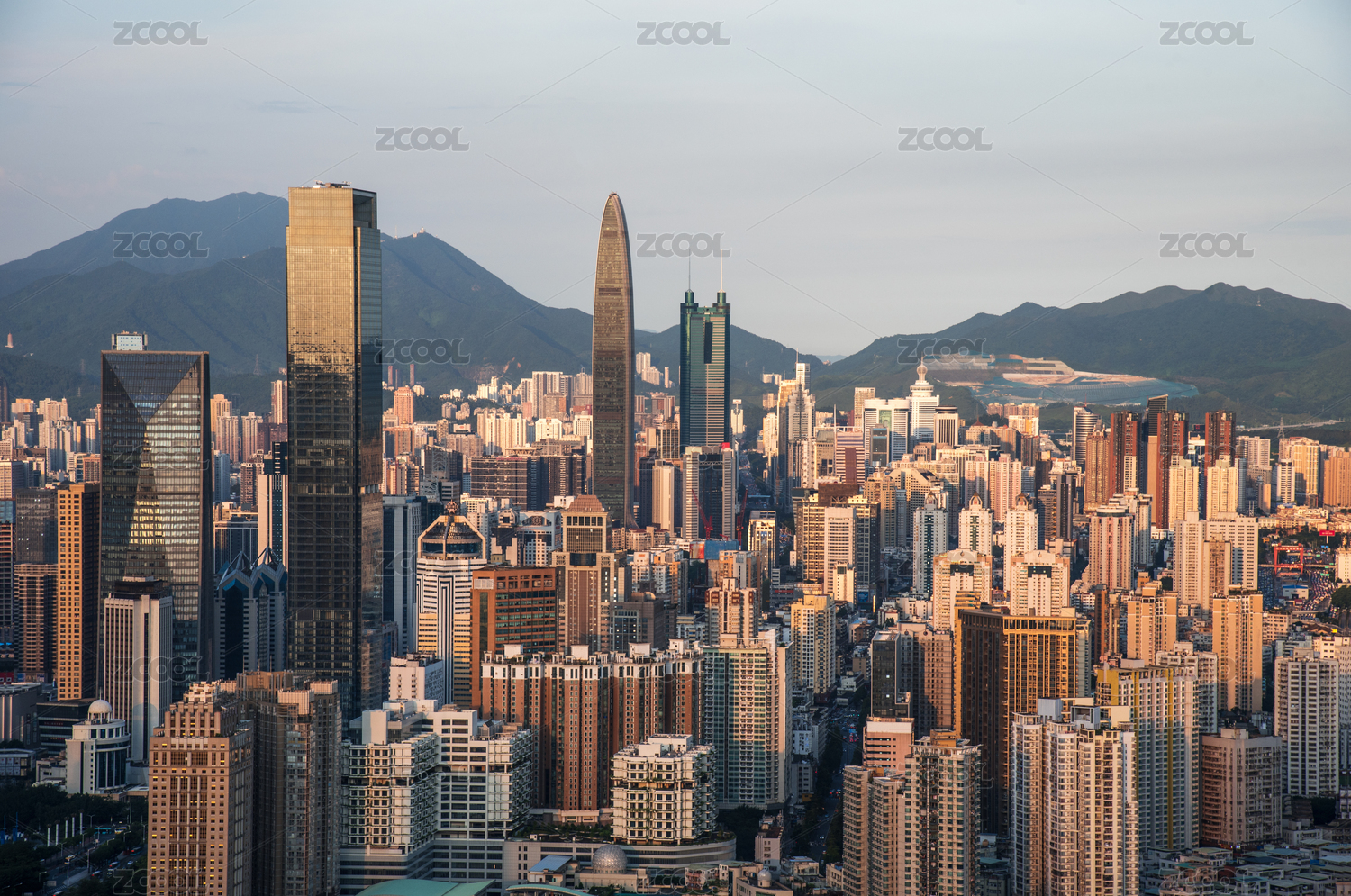 中国广东省深圳城市天际线建筑群高楼大厦景观