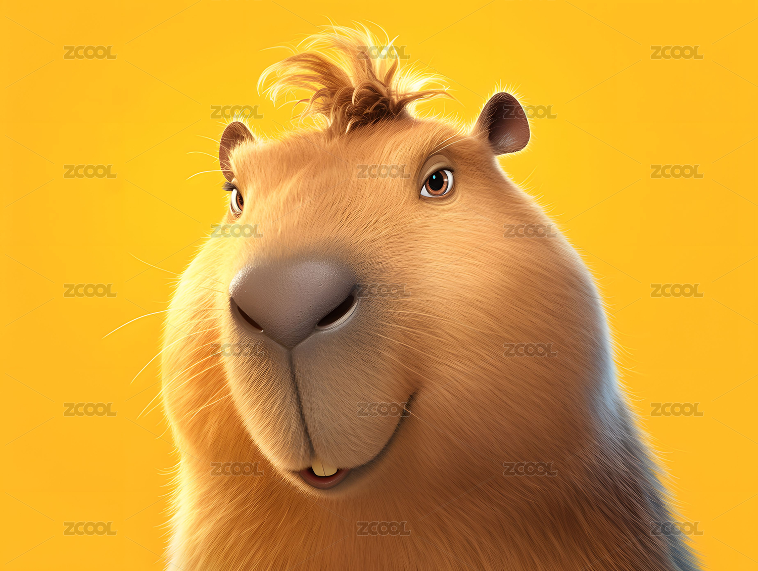 动物,水豚,卡皮巴拉,毛茸茸,可爱,拟人,夸张,表情,卡通,动画