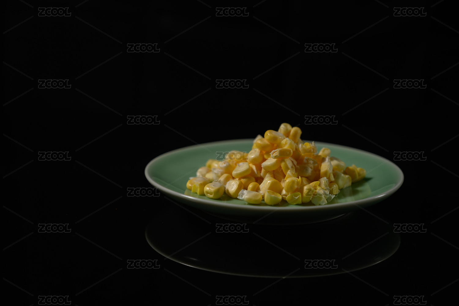 桌面上的盘子里的美味可口的新鲜玉米粒