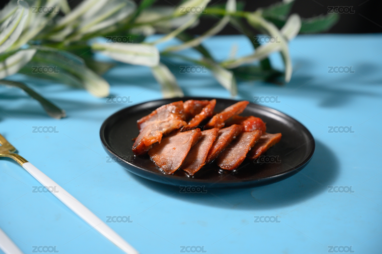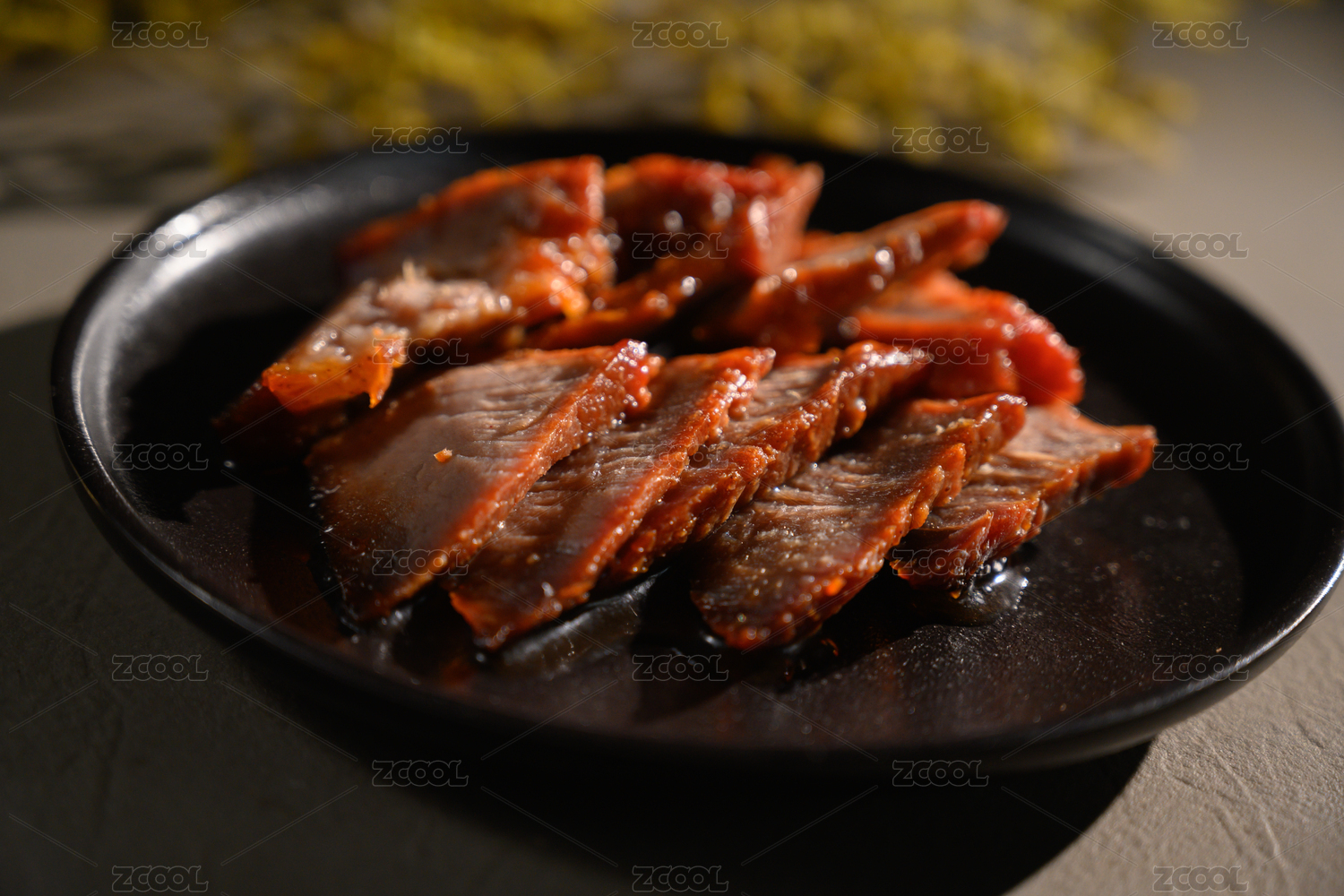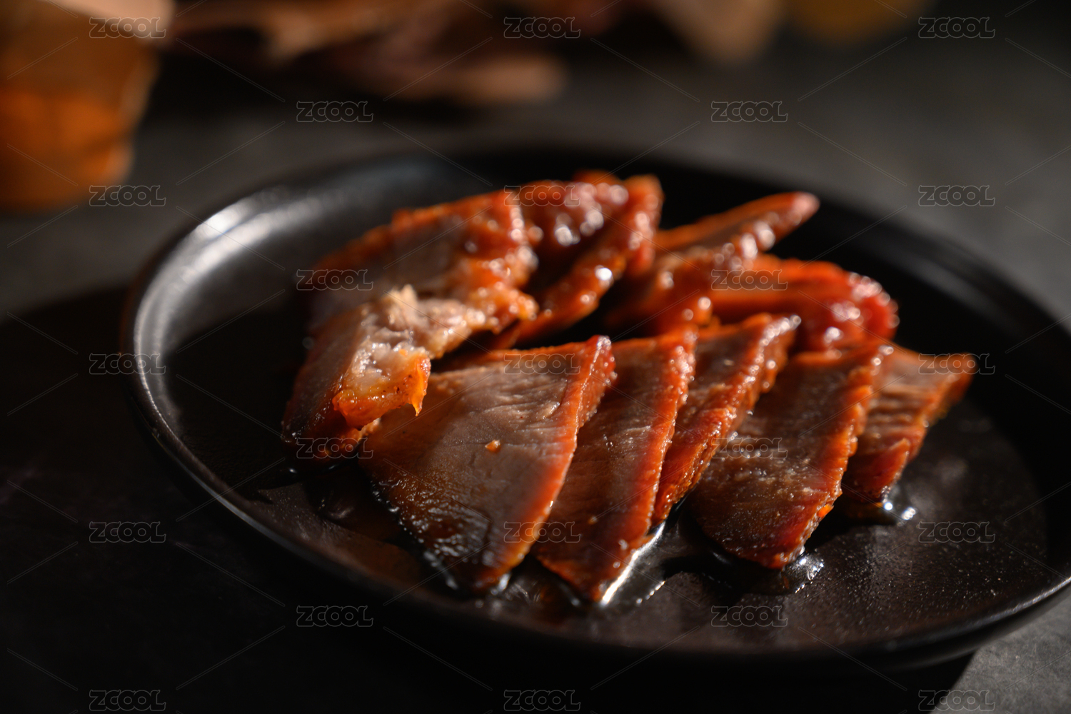 桌面上的盘子里的美味可口的叉烧