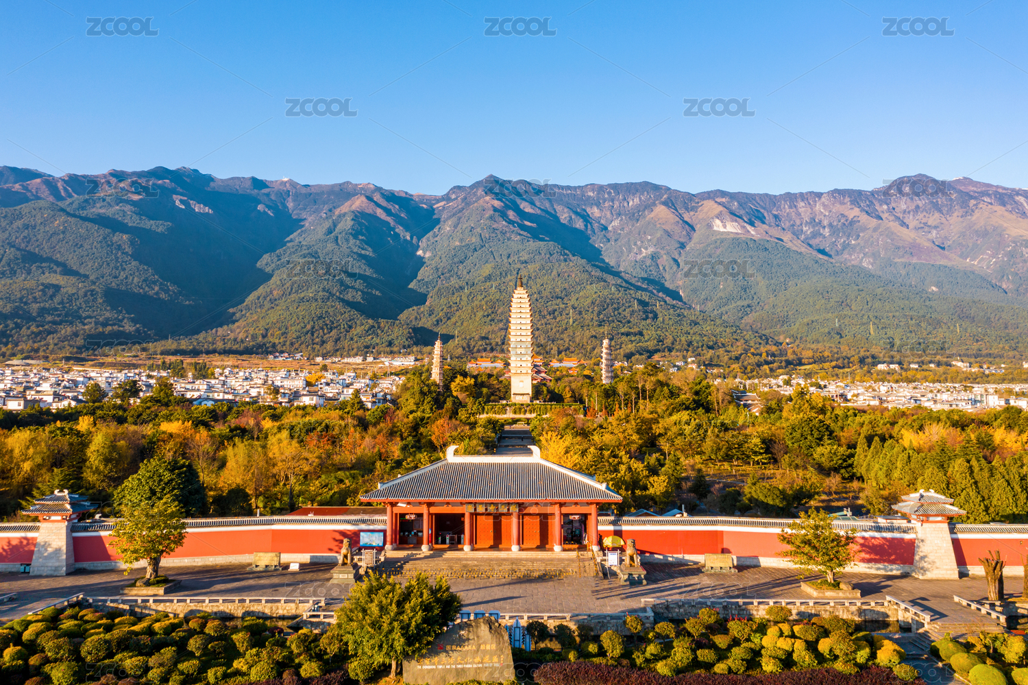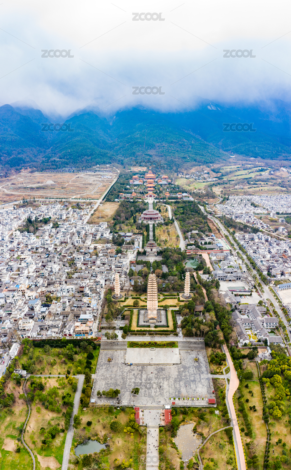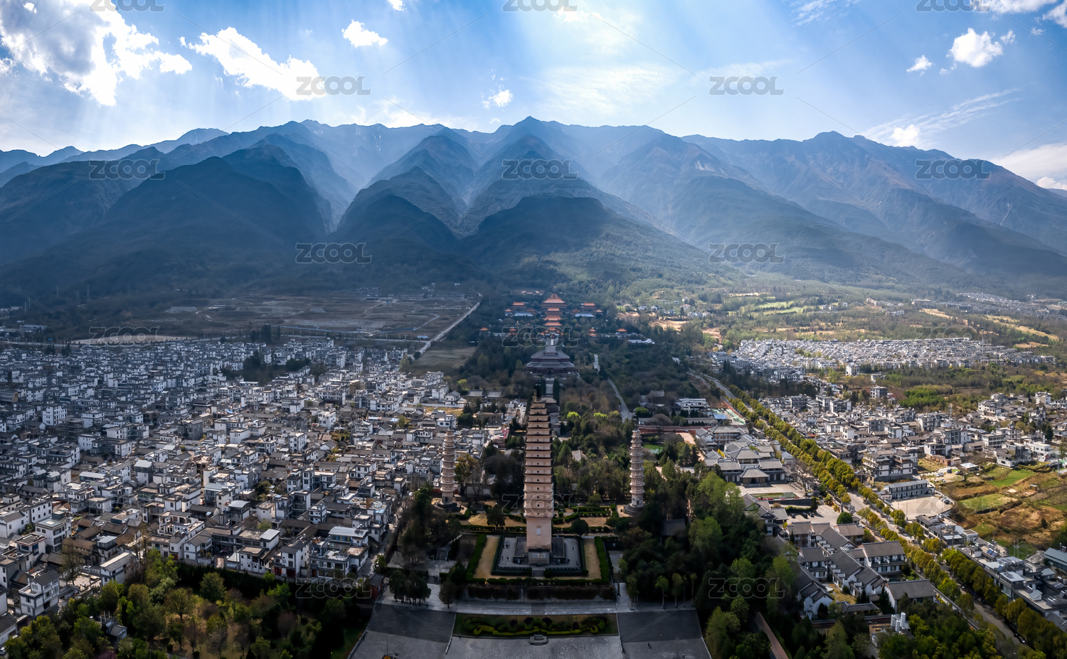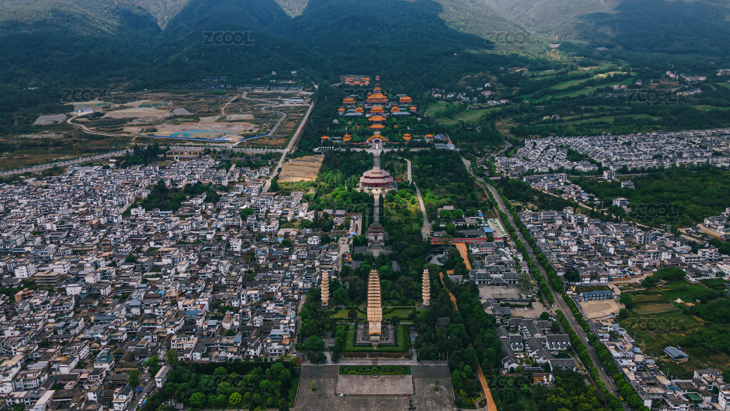 航拍云南大理古城5A旅游景点崇圣寺三塔