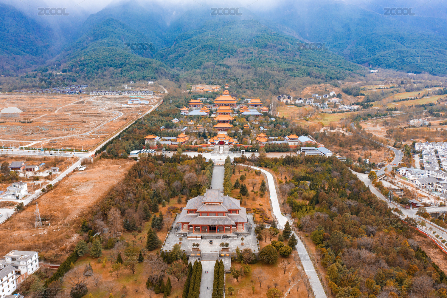 大理,苍山,崇圣寺,三塔,航拍,雾,晨雾,山,航拍视角,无人机