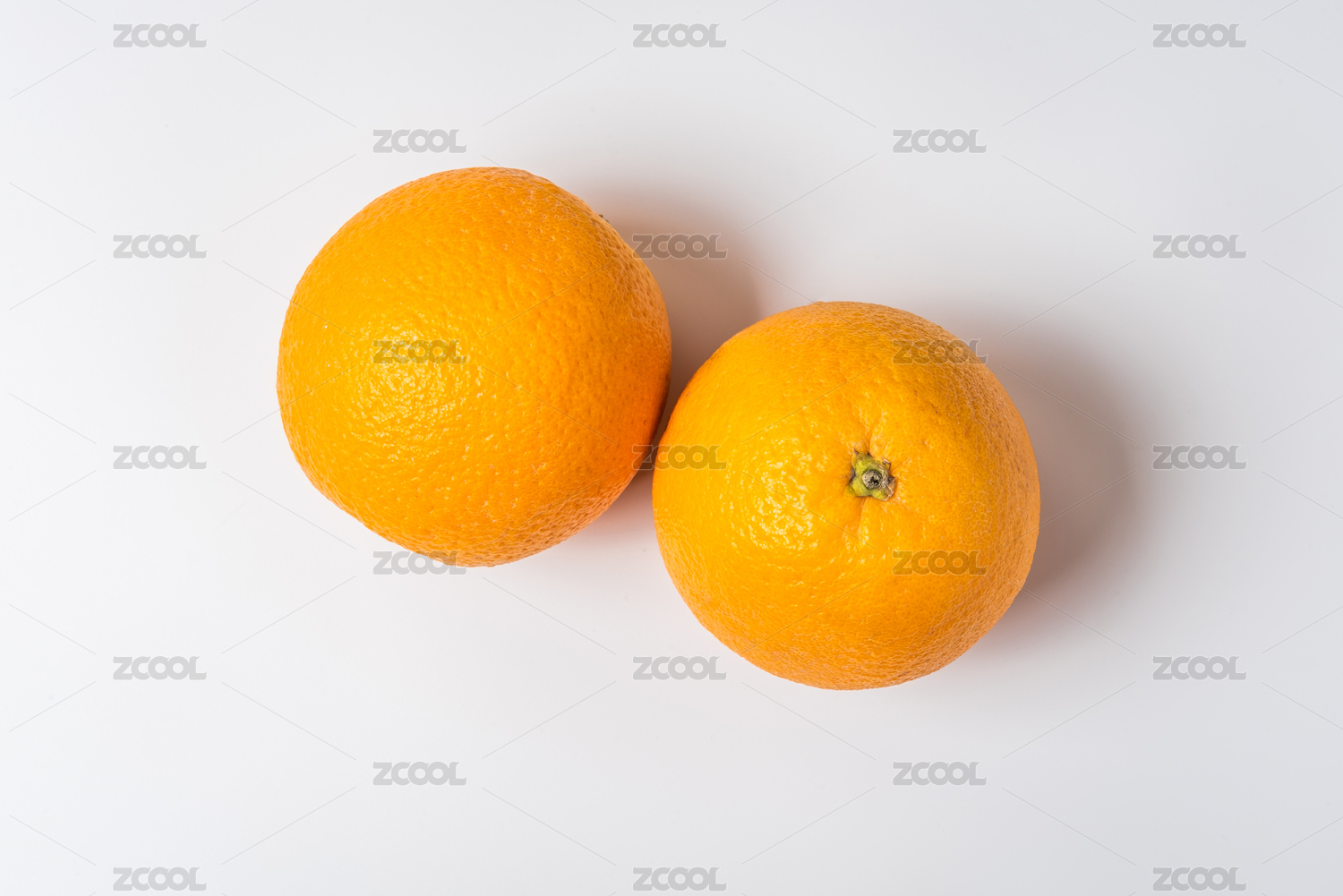 两个完整的新鲜美味的橙子