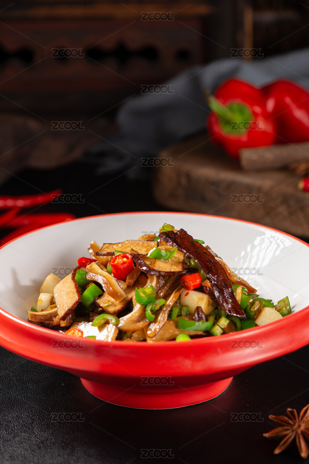青红椒松蘑小炒里脊肉片
