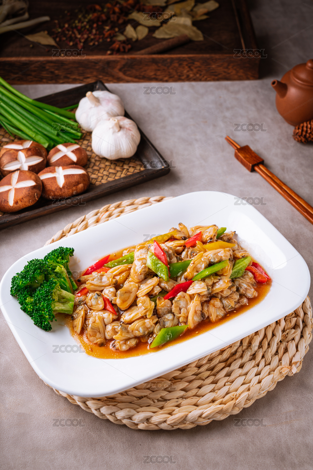 中餐美食一盘美味的辣炒竹蛏