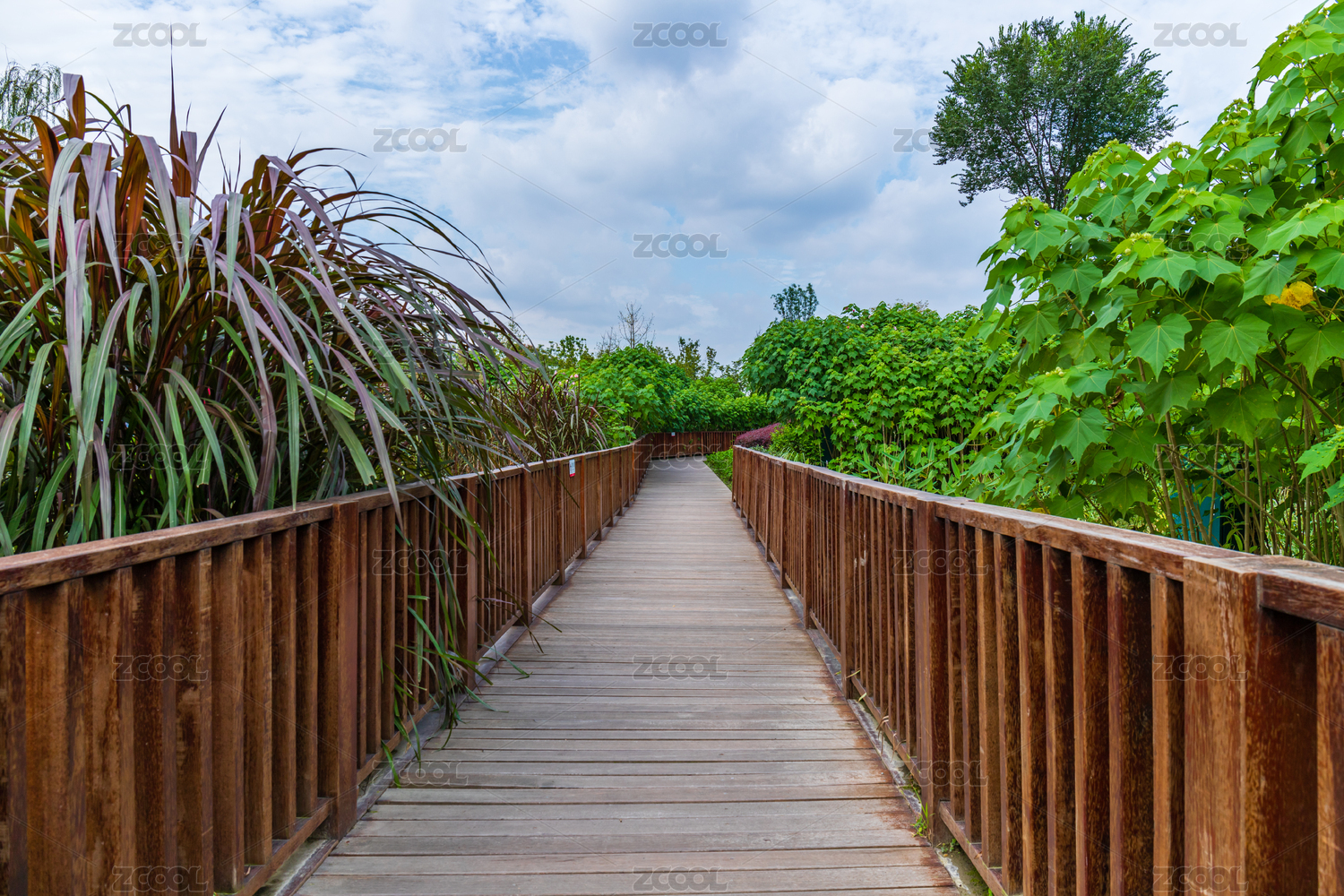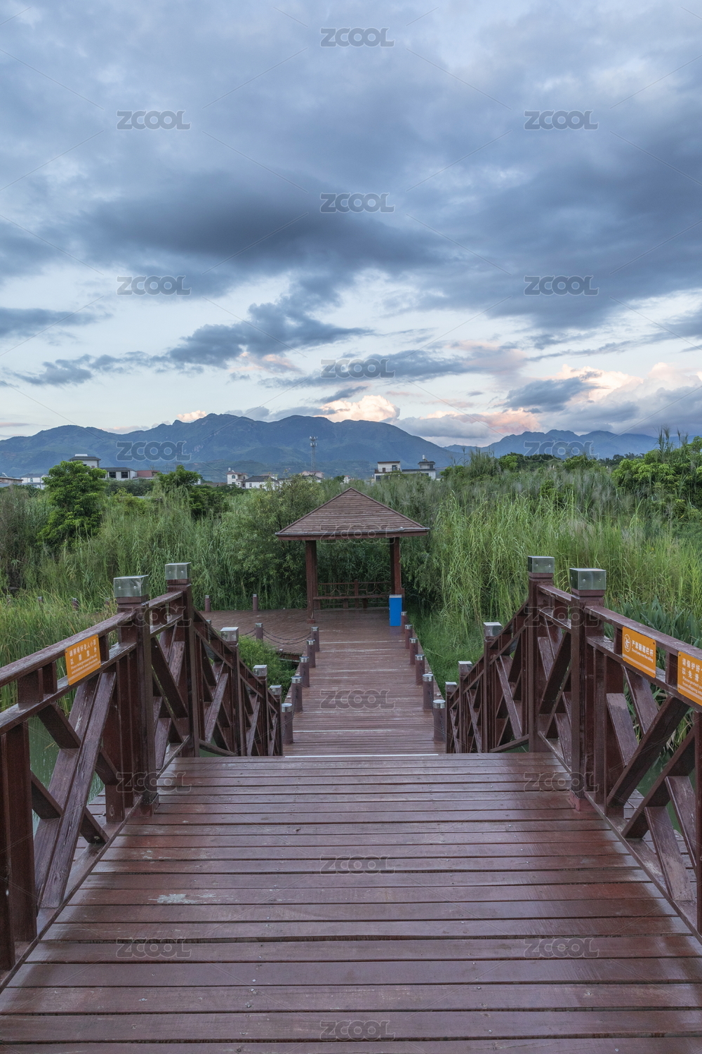 中国江苏无锡长广溪湿地公园景观石塘桥廊桥自然风光