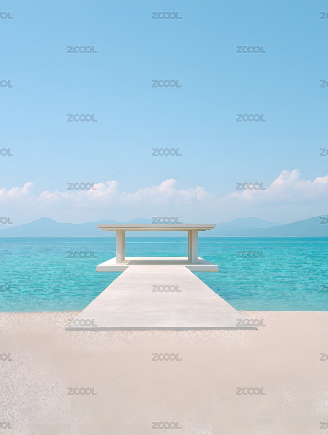 海边沙滩上延伸至海的白色平台
