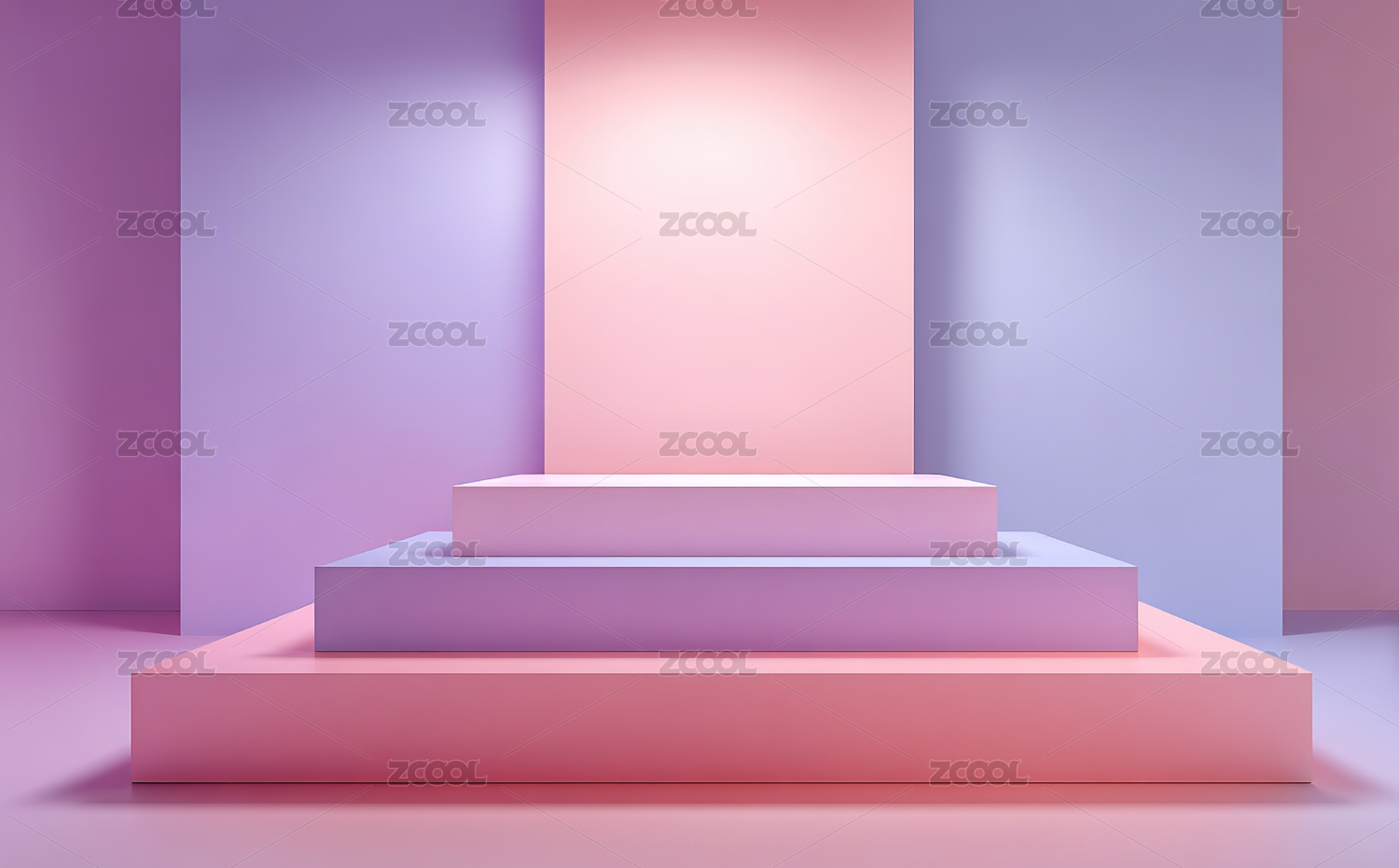梦幻粉蓝渐变色展台底座电商3D效果图
