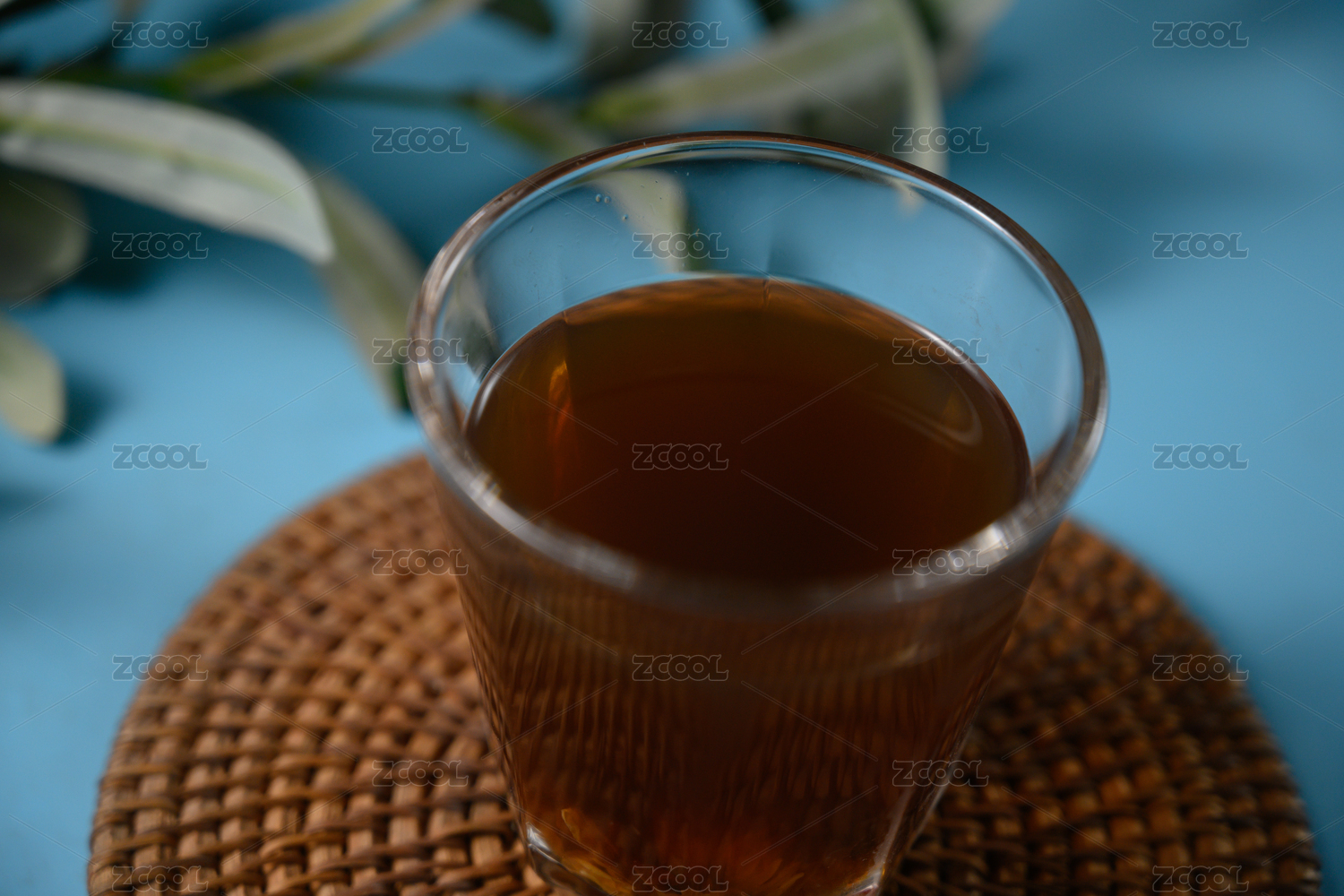 桌面上的盘子里的美味可口的咖啡果皮茶
