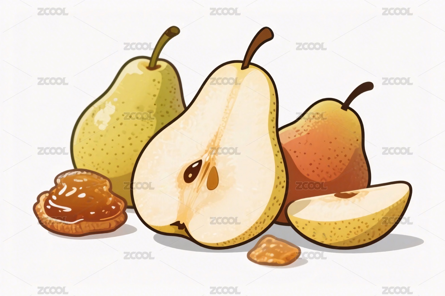 水果,插画,黄色,绿色,清新,植物,果肉,果汁,梨子,梨