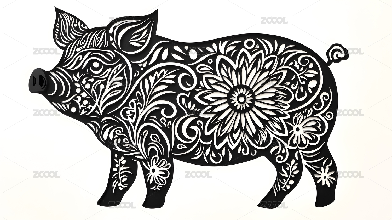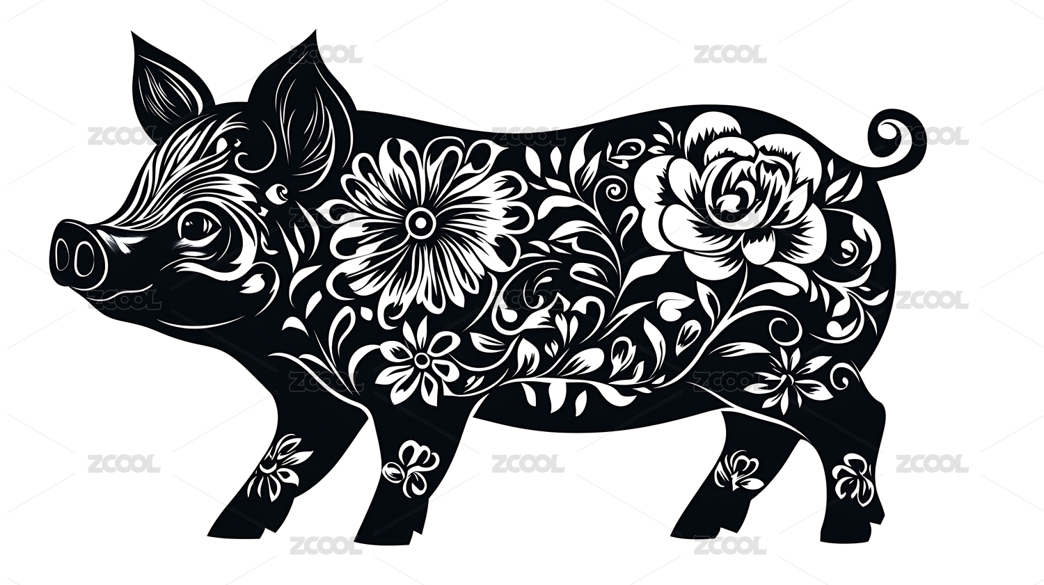 绘画,元素,红色,喜庆,新年,春节,白色背景,单色,插画,剪纸