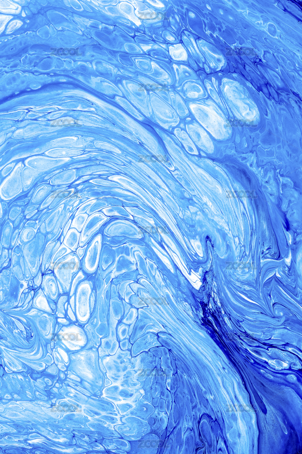 蓝青白混合颜料流体艺术,抽象的彩色背景墙纸纹理。