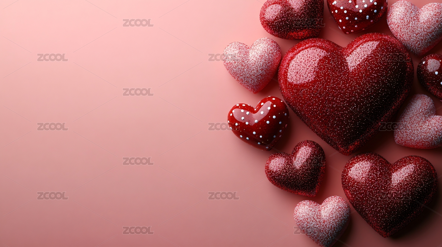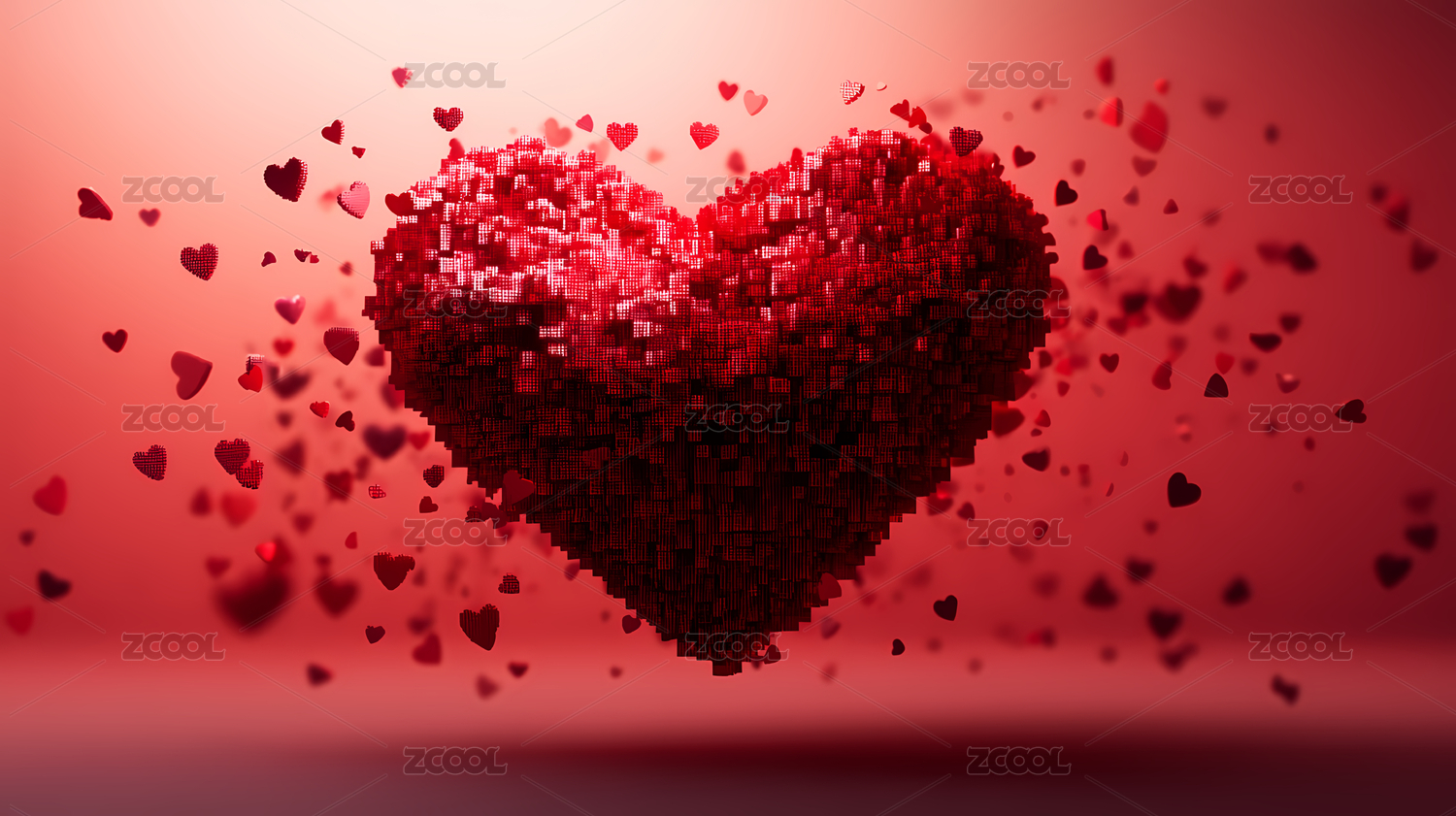红色,心形,小心形,粉红色,渐变背景,草莓,小颗粒,果冻,花瓣,立体图案