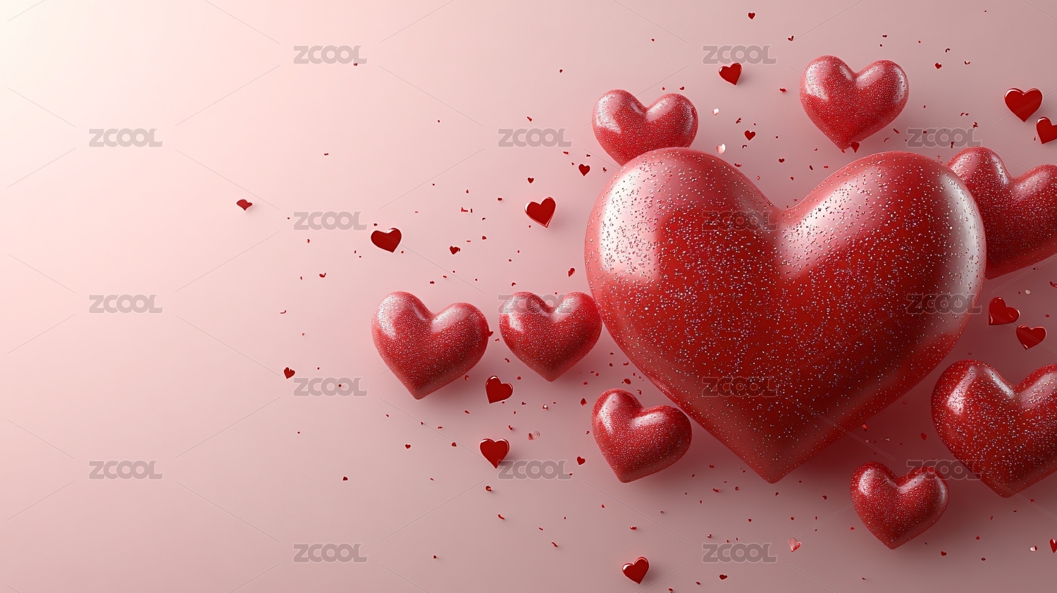 粉色背景上闪耀爱心与小爱心