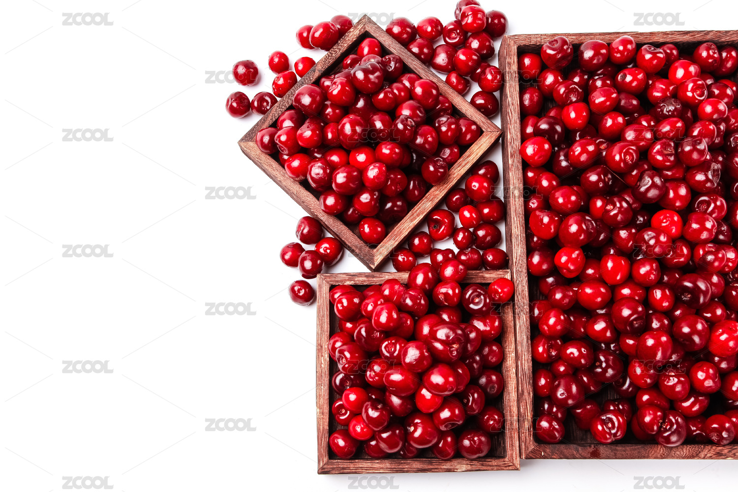 木制容器里放着的烟台樱桃