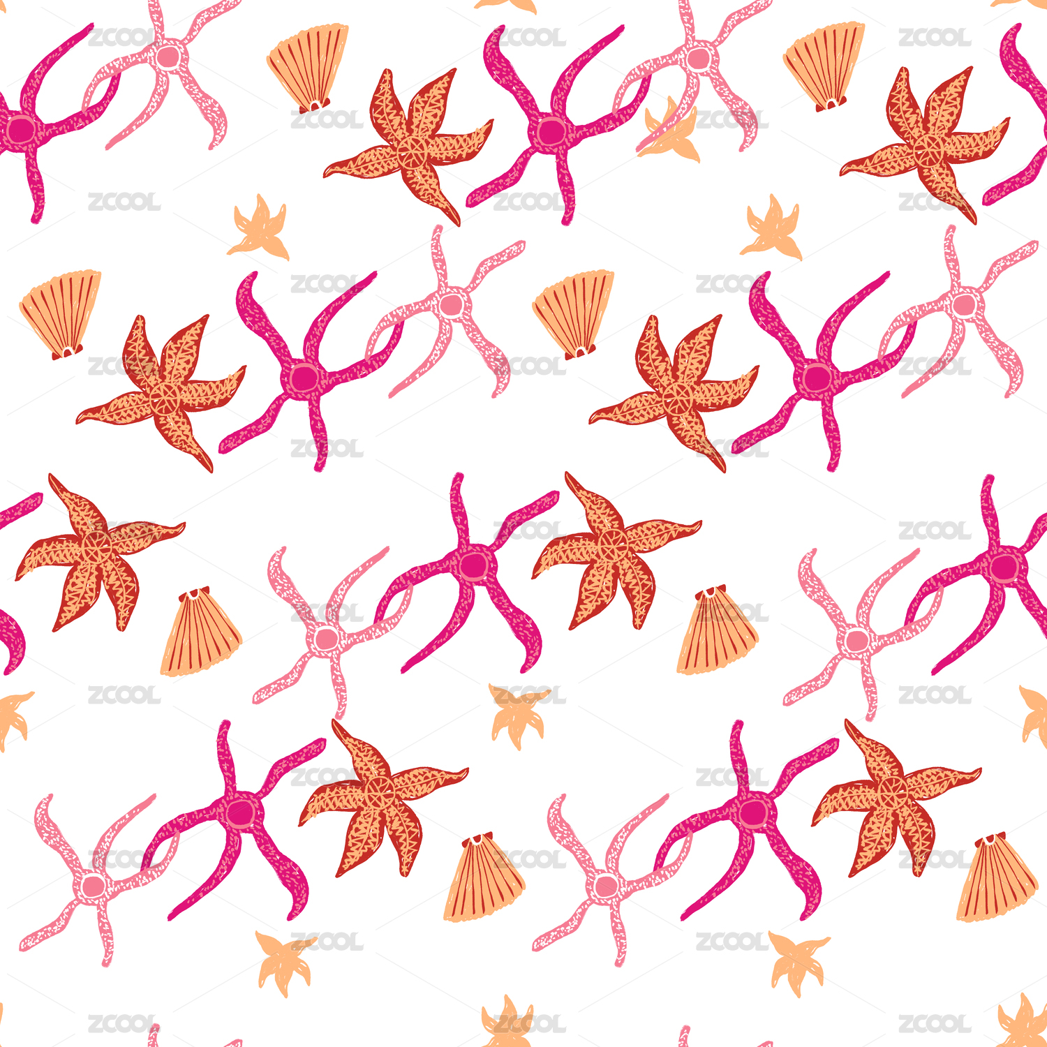 海星,贝壳,海洋,粉色,图案设计,无缝图案,位图,玫红色