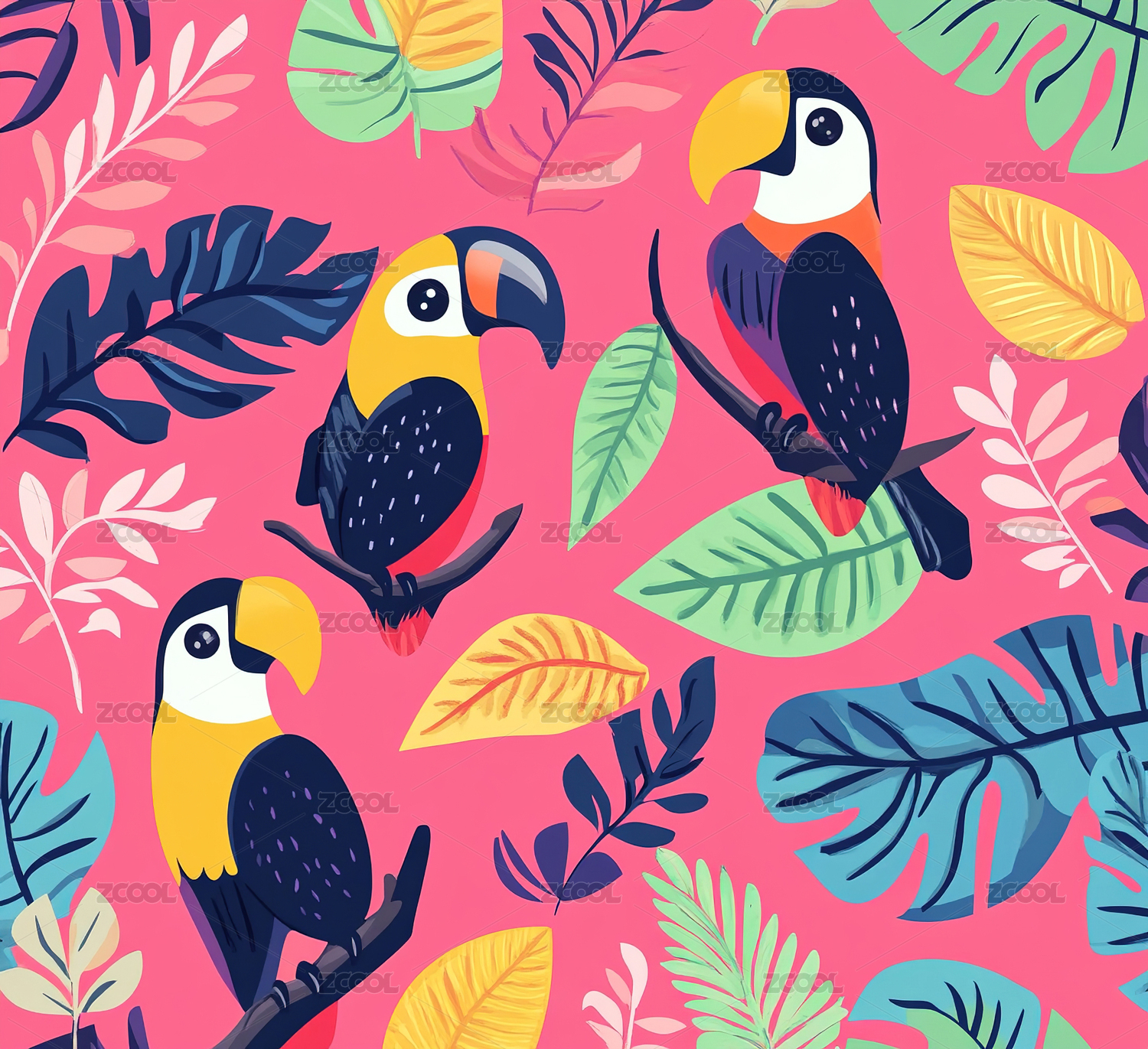热带,天堂,鸟类,花朵,叶子,粉色,黄色,绿色,蓝色,图案