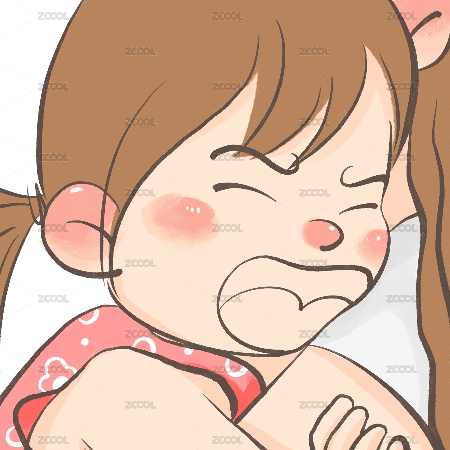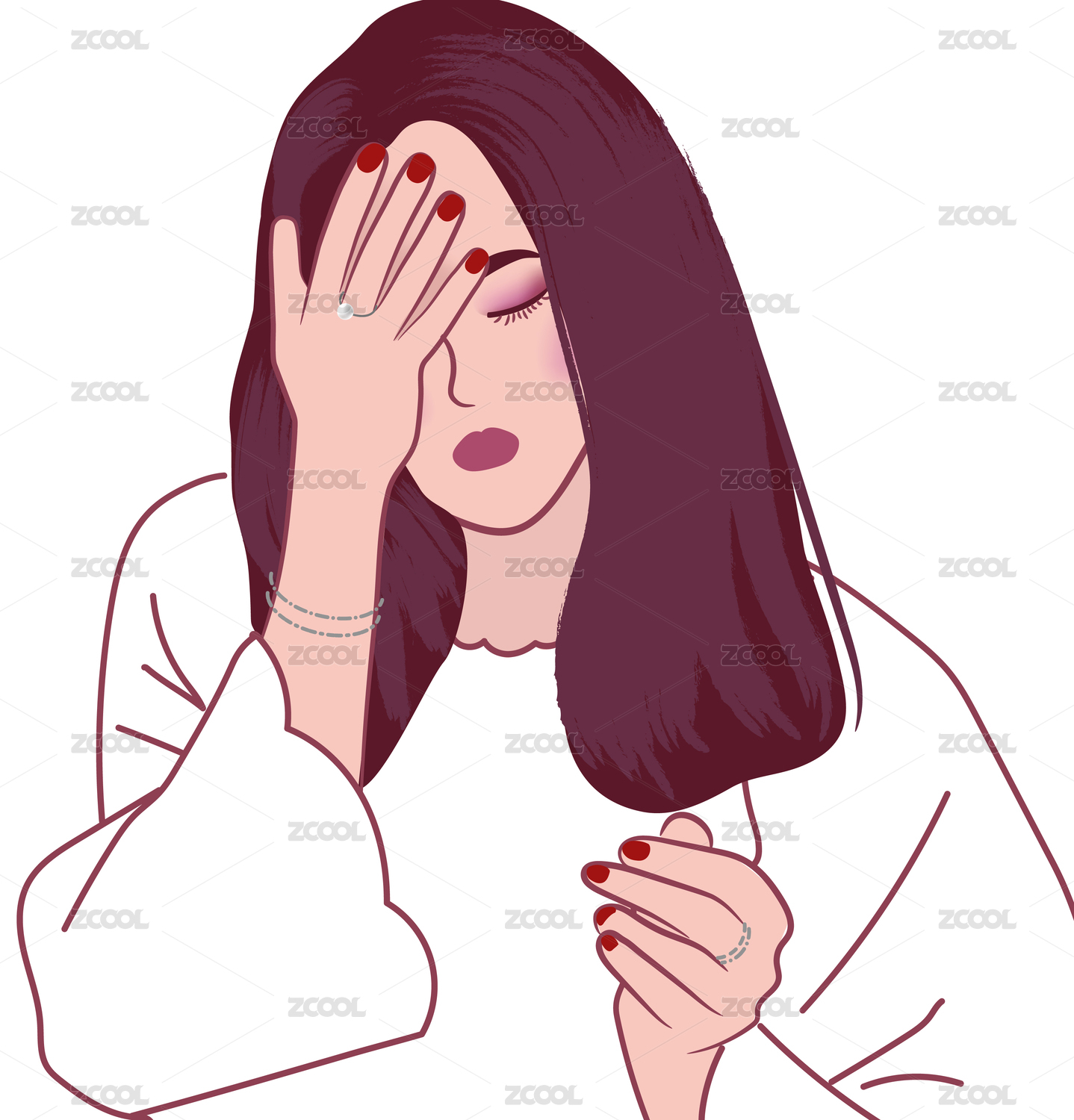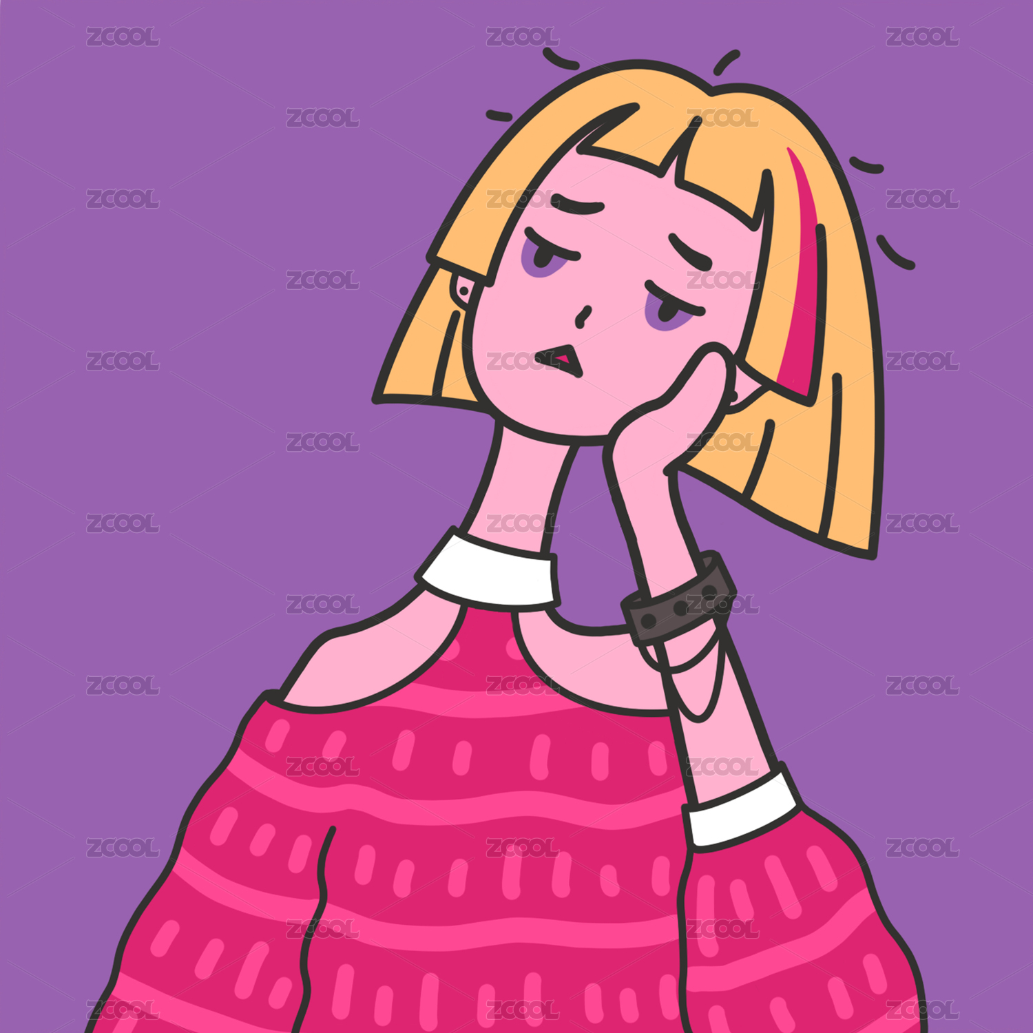 托腮的黑眼圈 困倦 金发酷女孩插画