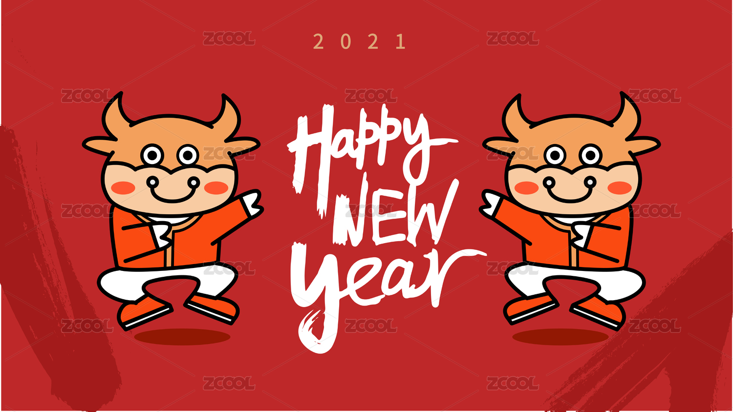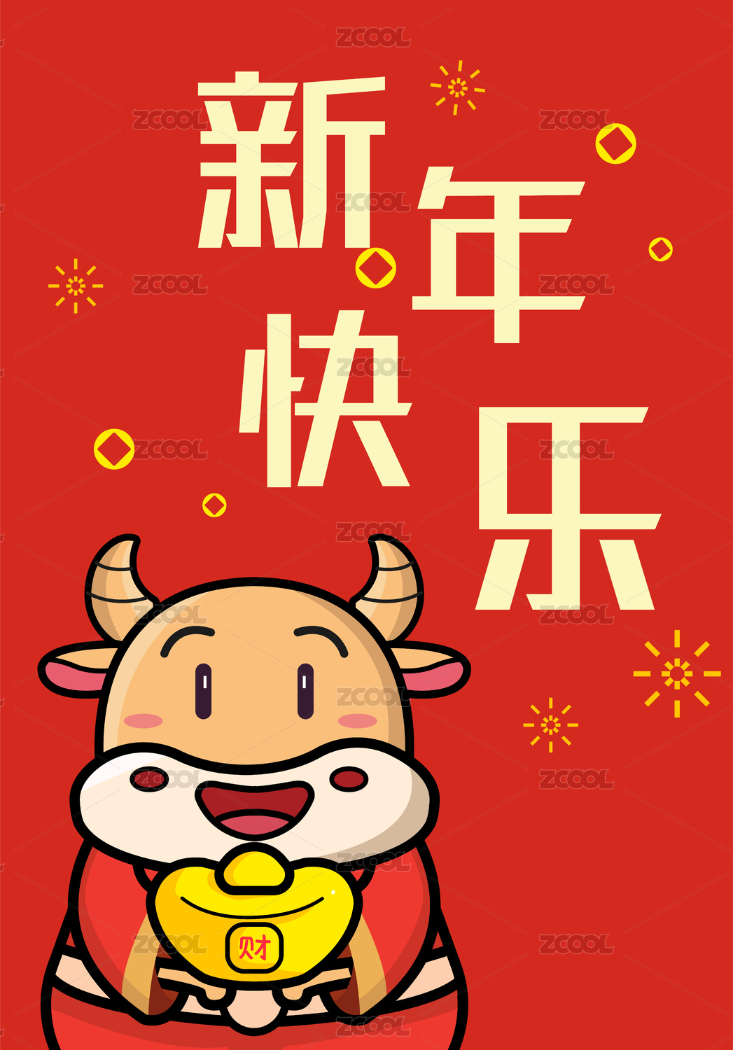 2021牛年 新年快乐海报 牛插图牛年形