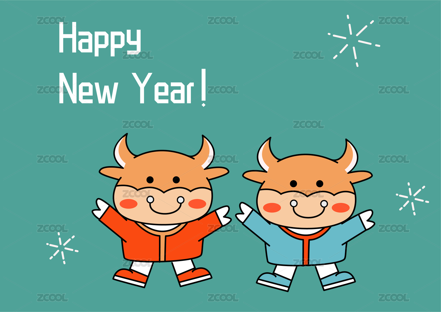 新年牛年可爱牛牛矢量插画
