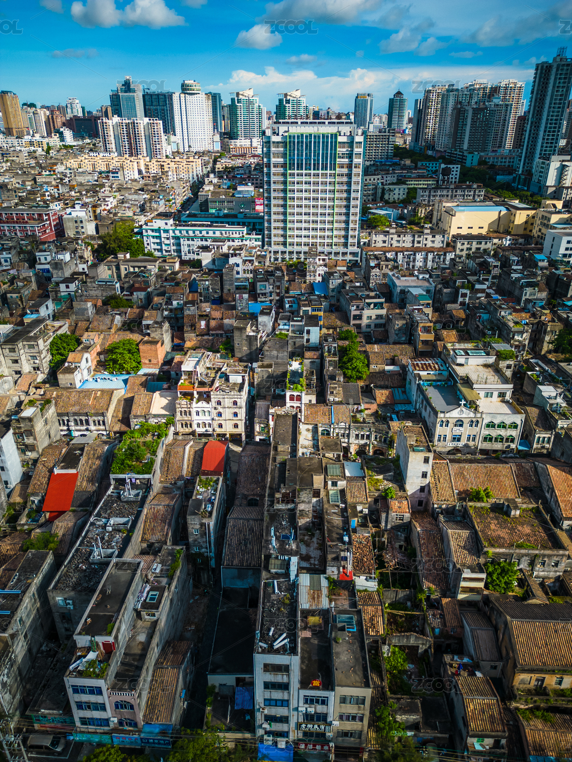 航拍海南海口骑楼老街街区历史文化建筑群落