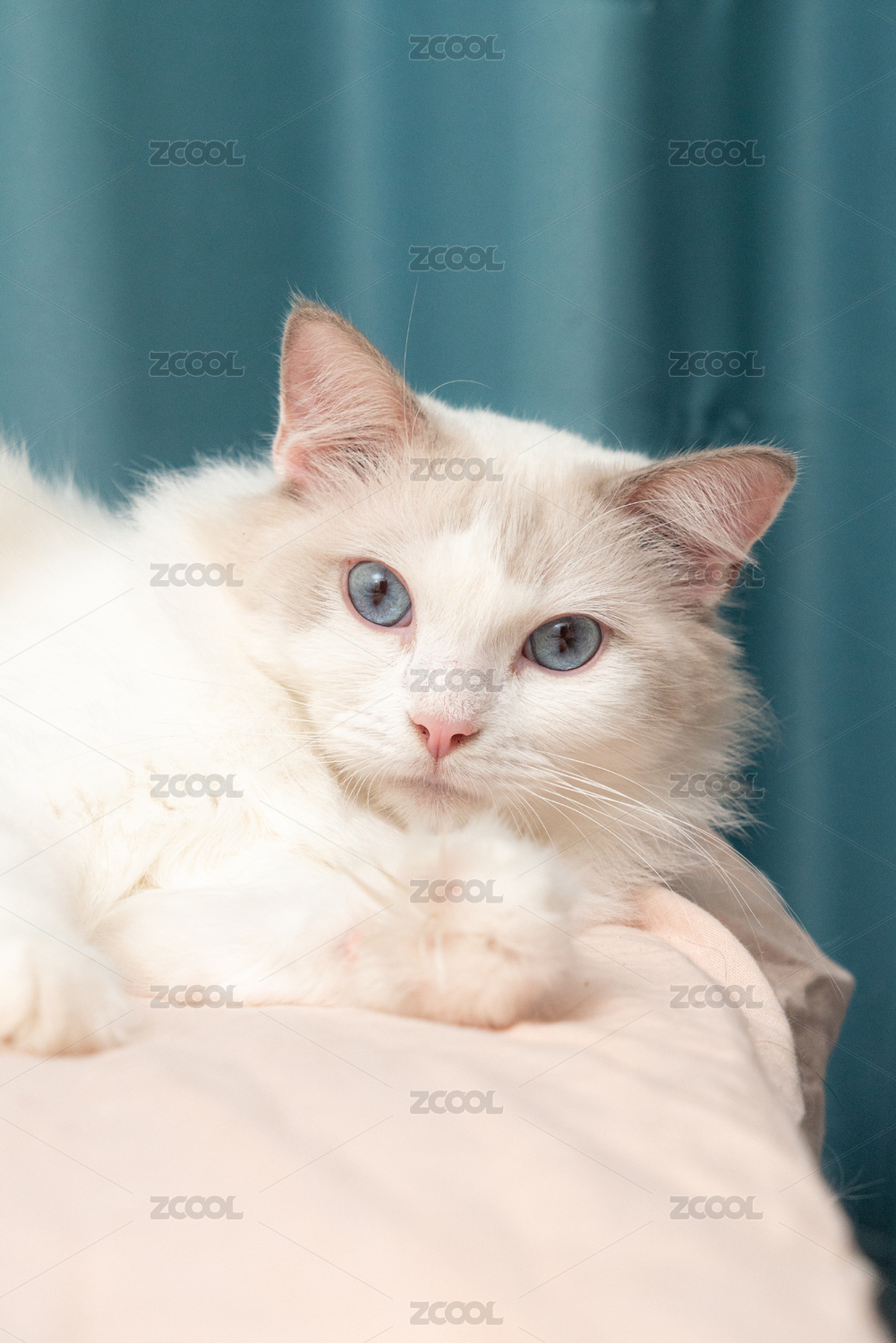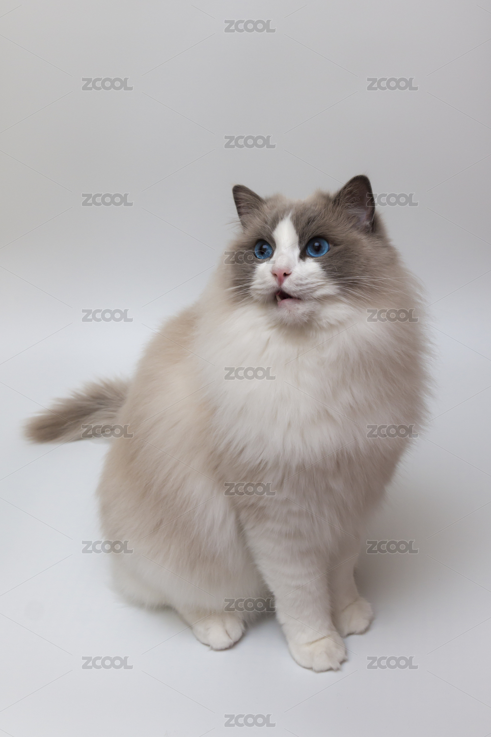 布偶猫肖像蓬松长毛蓝眼灰白摄影