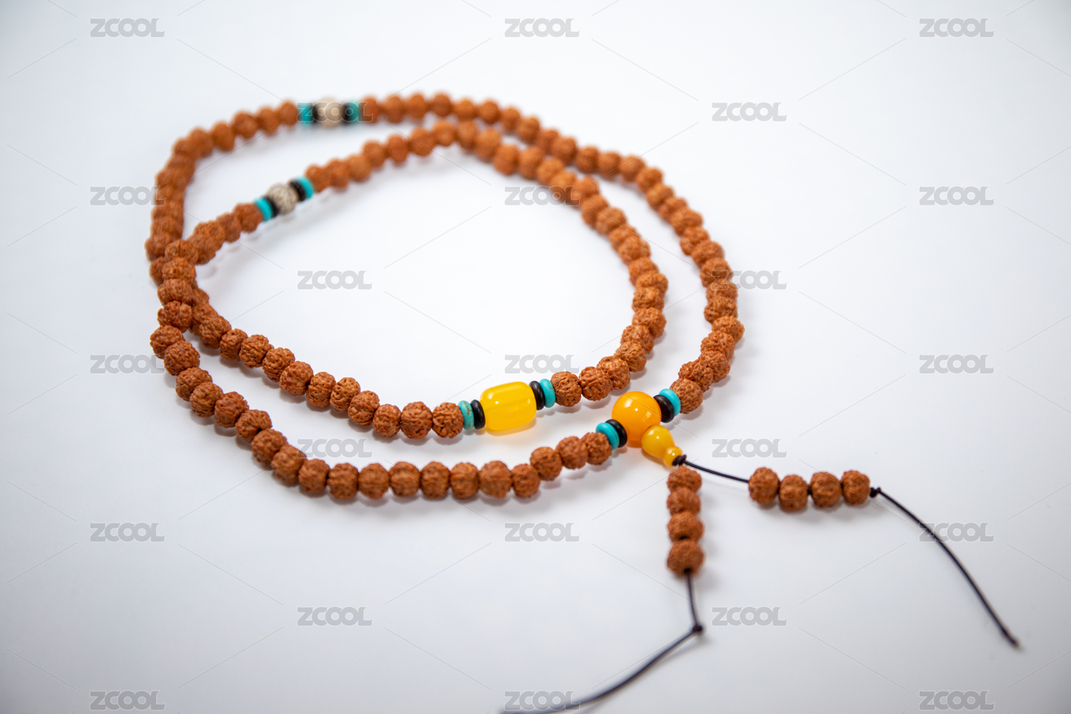 白色背景上的凤眼菩提子手串项链