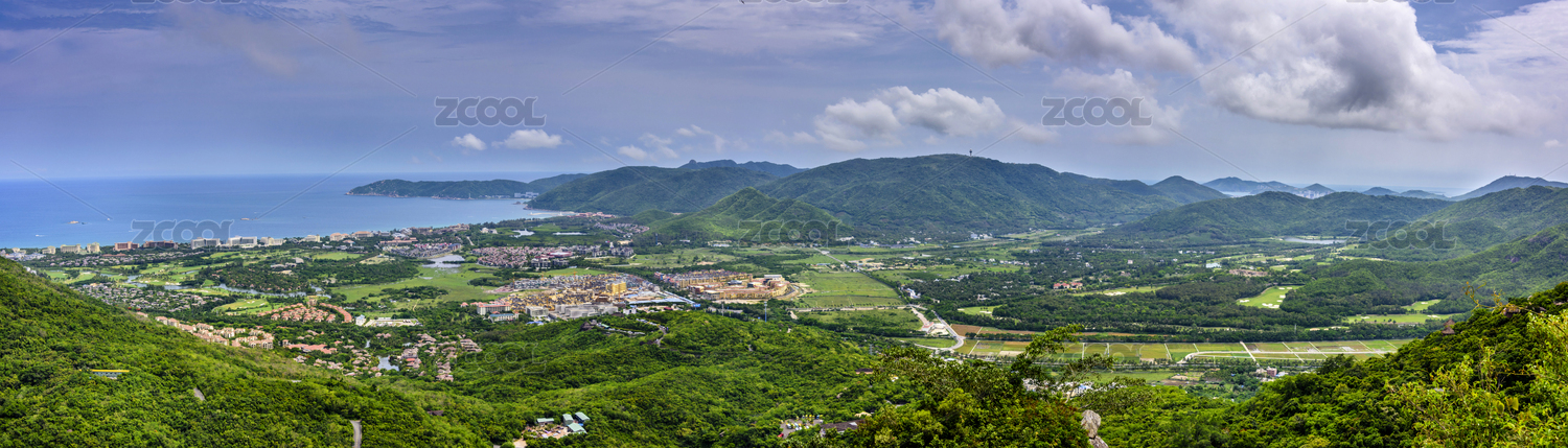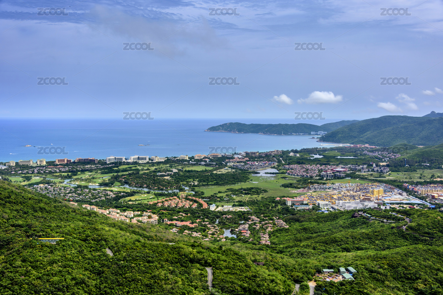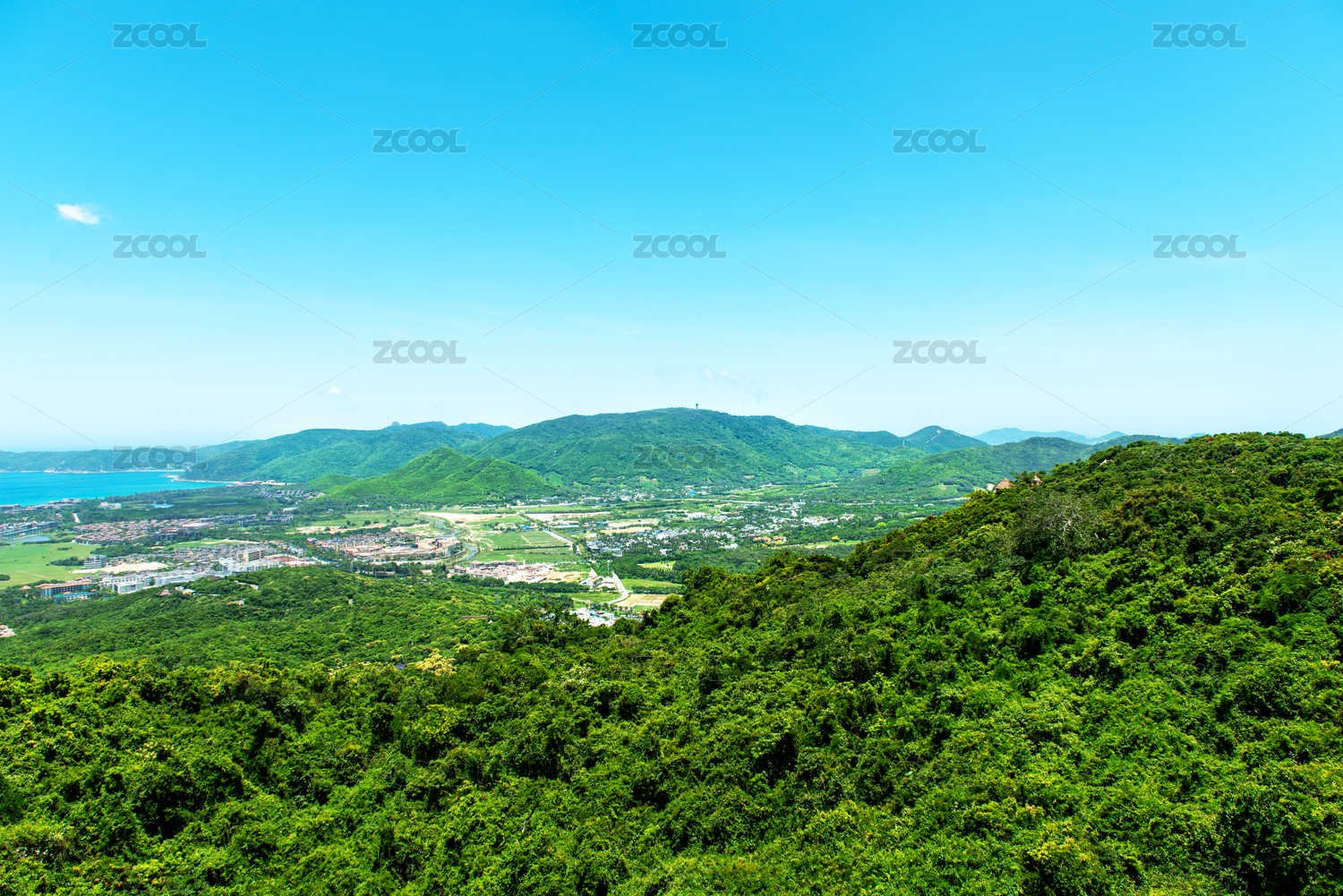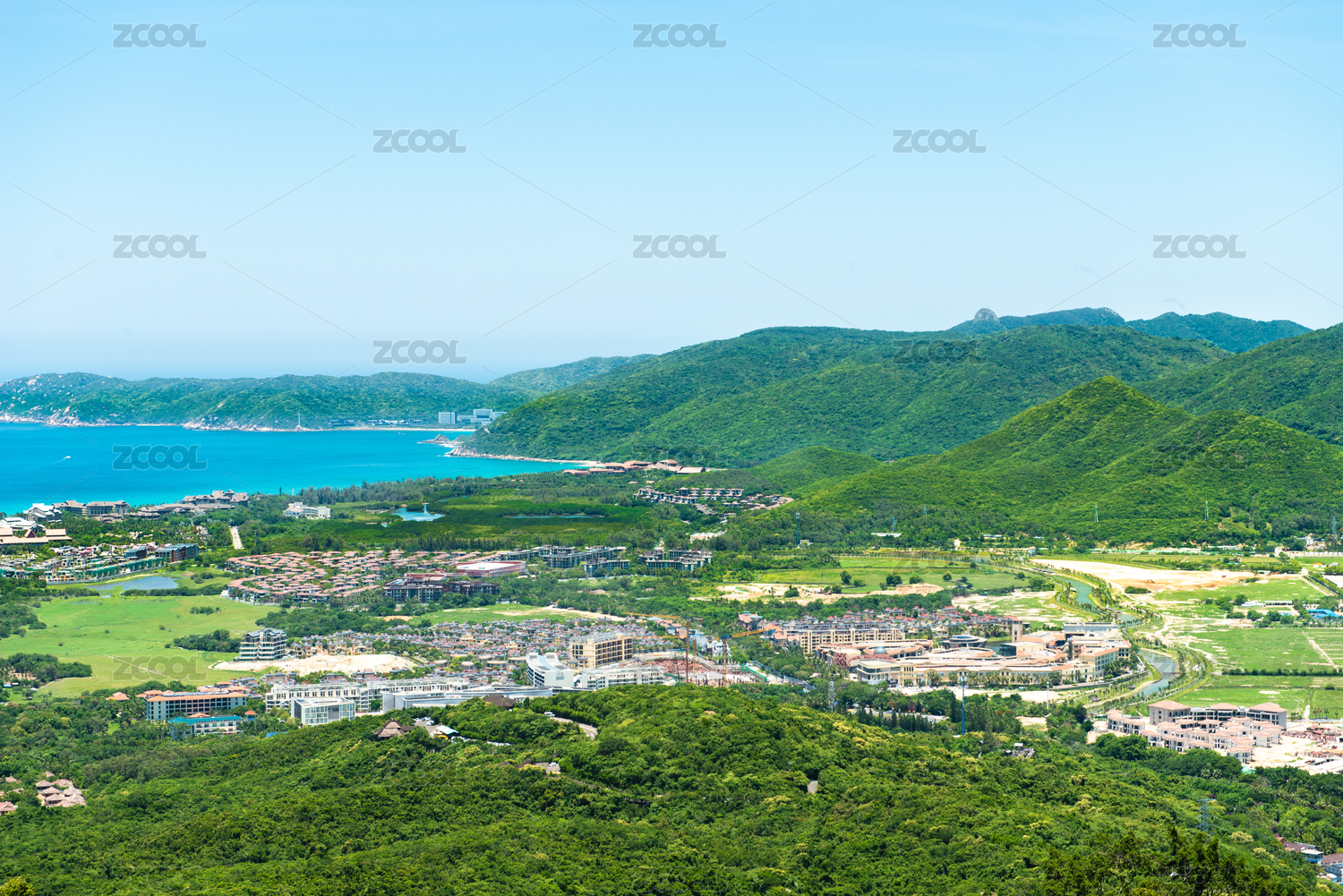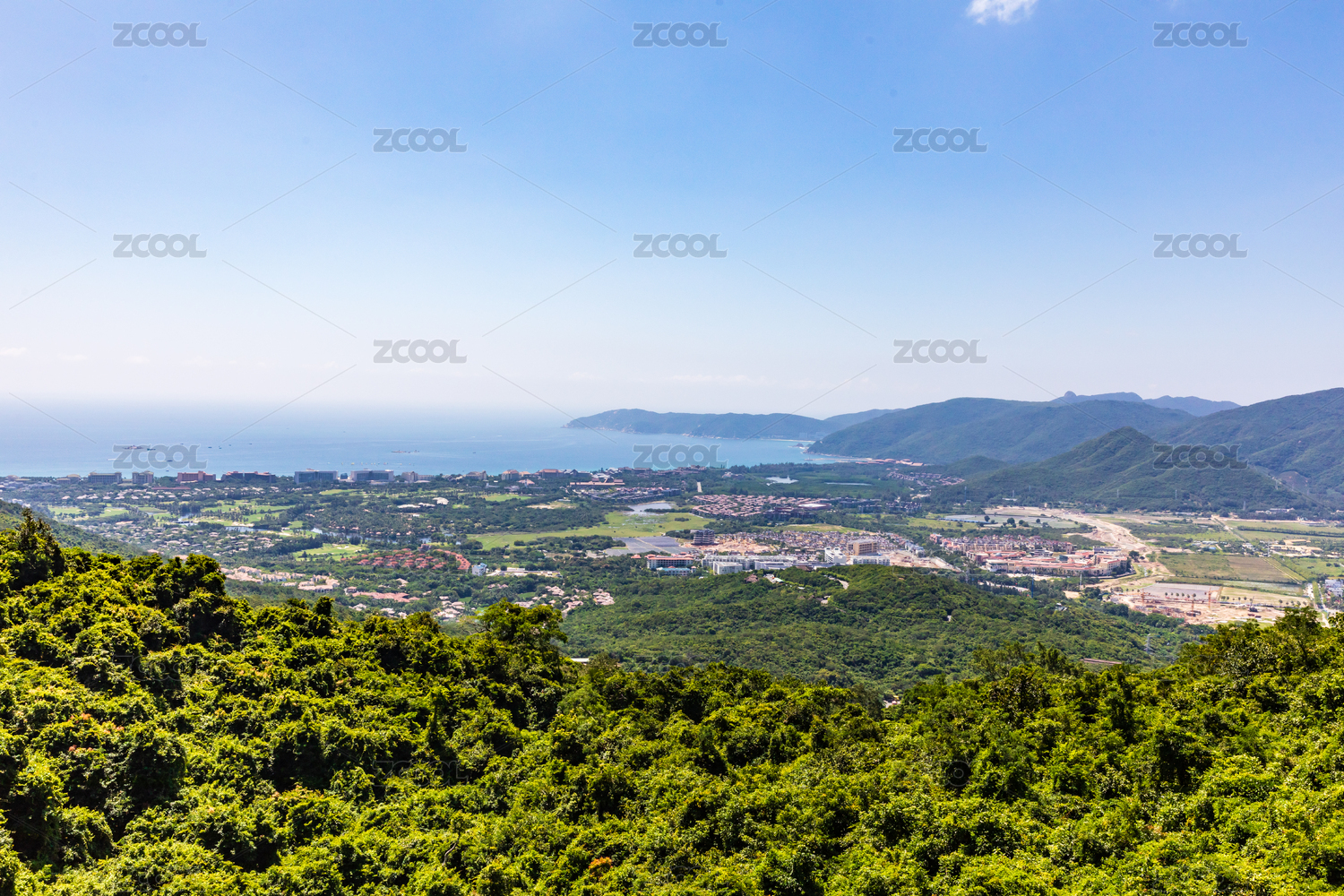 海南山崖亚龙湾热带深林公园山顶俯瞰城市