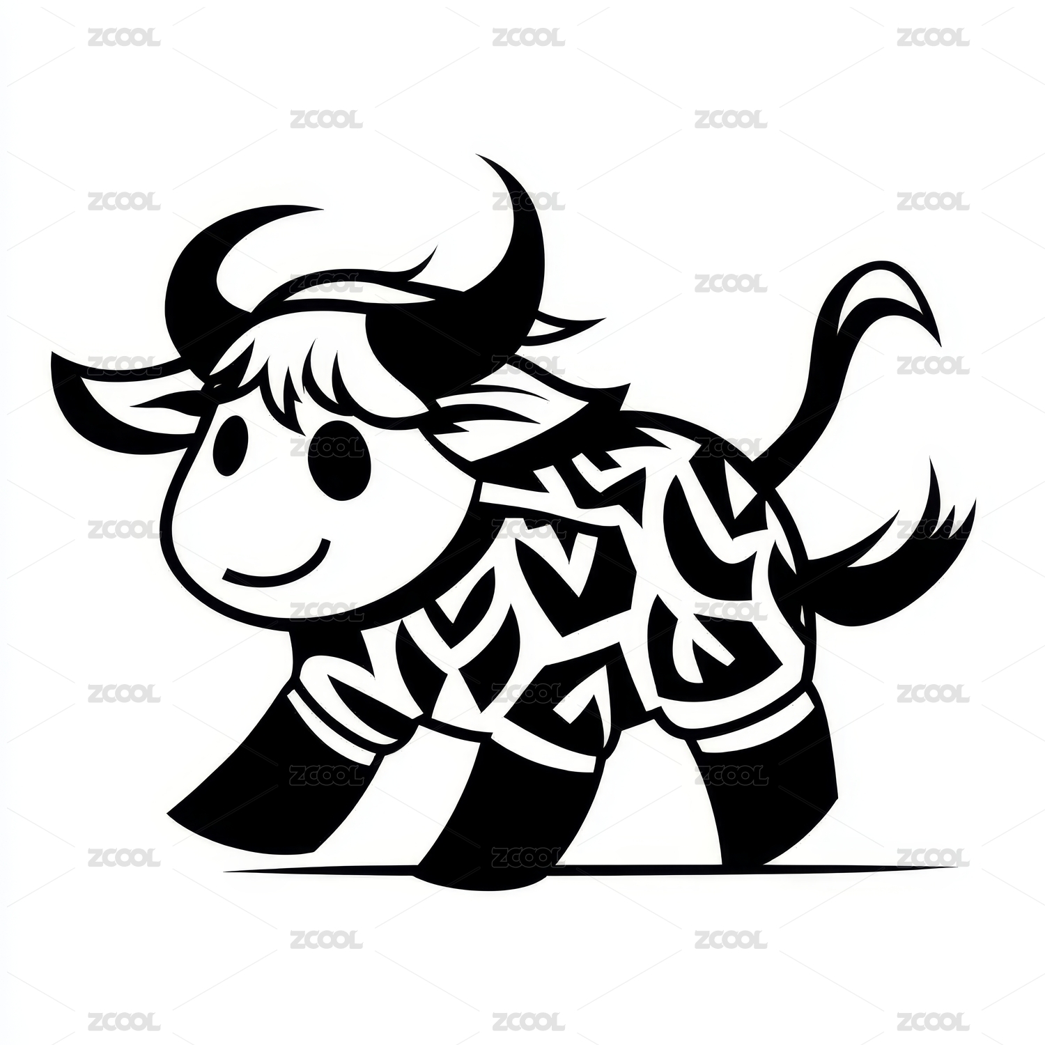 牛,牛年,装饰画,线条,简洁,家居,黑白,色块,强壮,简洁线条