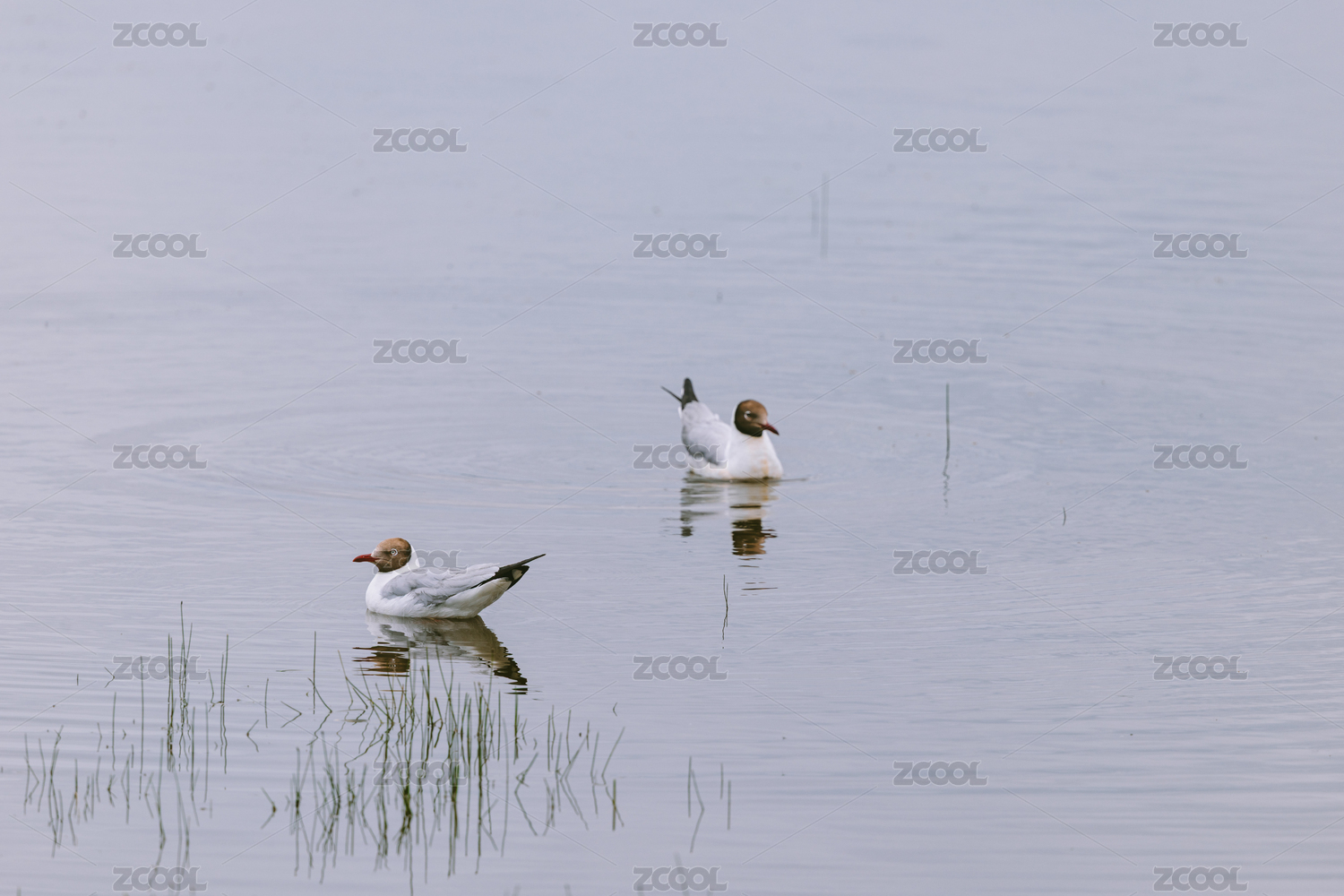 中国四川阿坝州若尔盖花湖夏季的棕头鸥