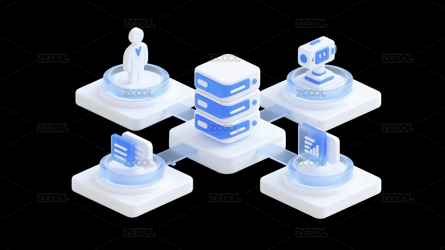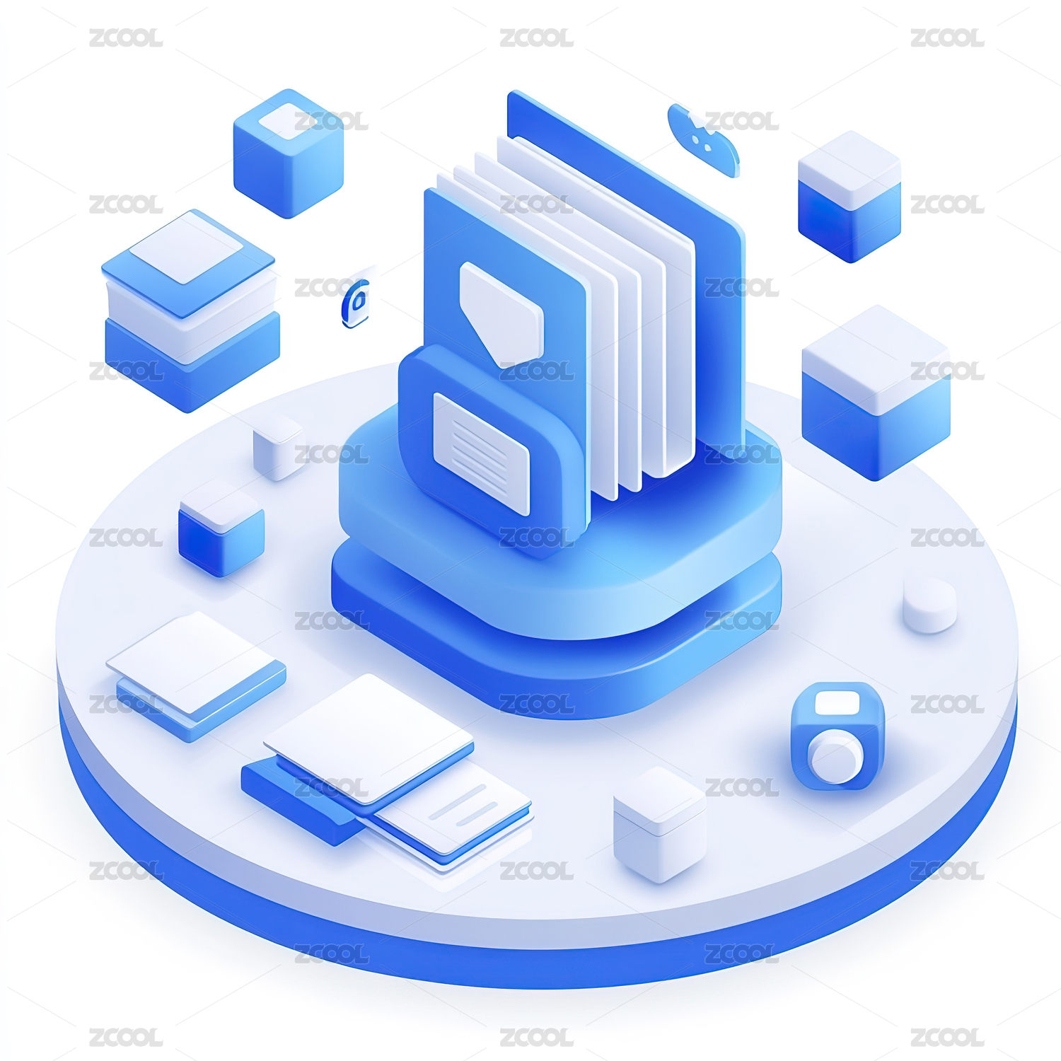 3D科技立体图标互联网金融云计算存储元素