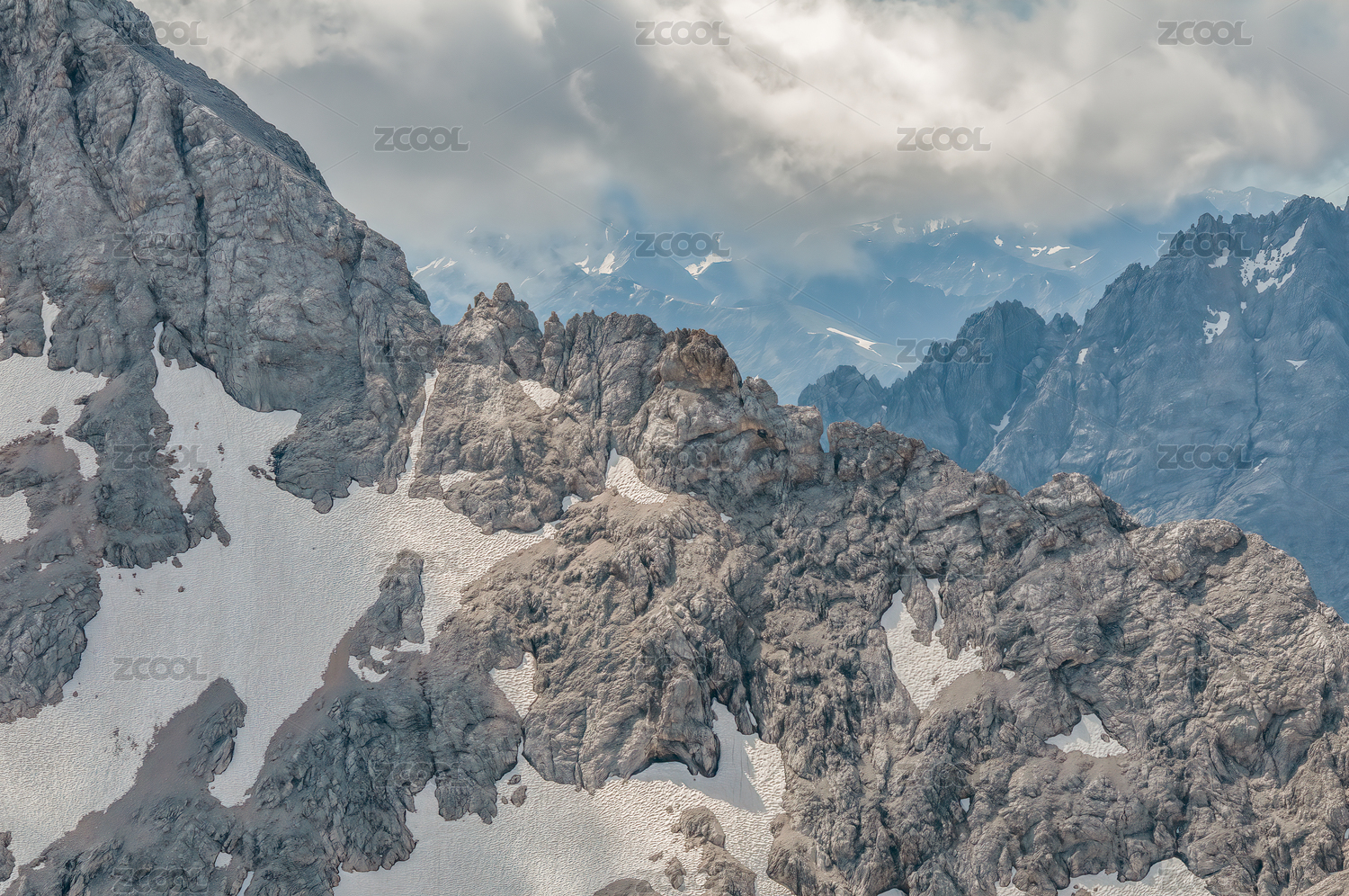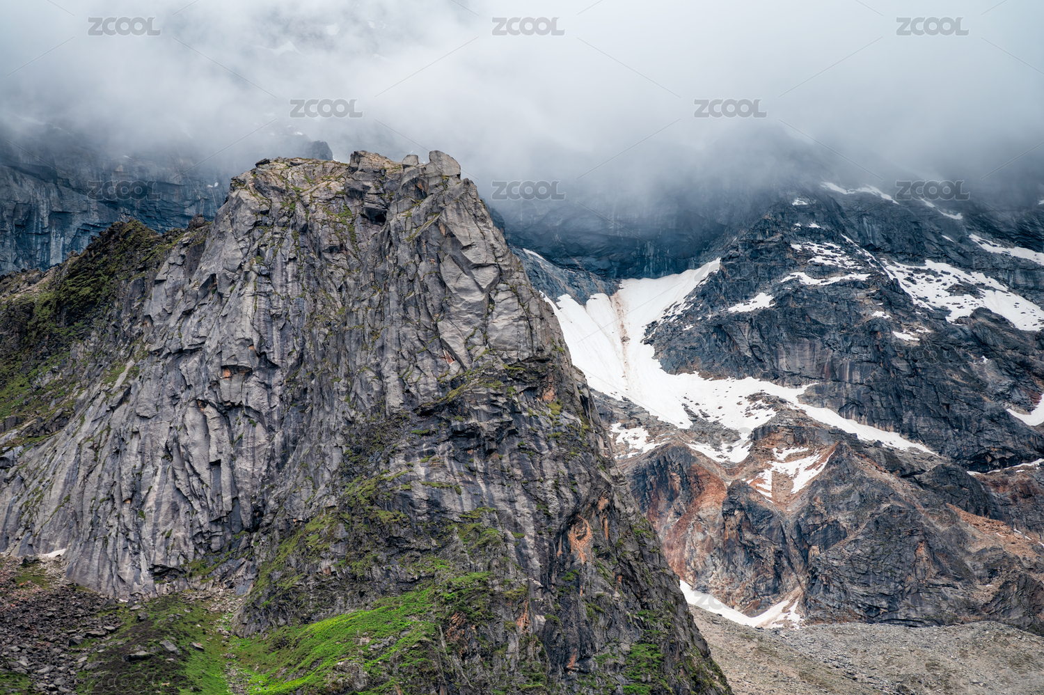 中国云南丽江玉雪山山顶的乌云和巨大的冰川景观