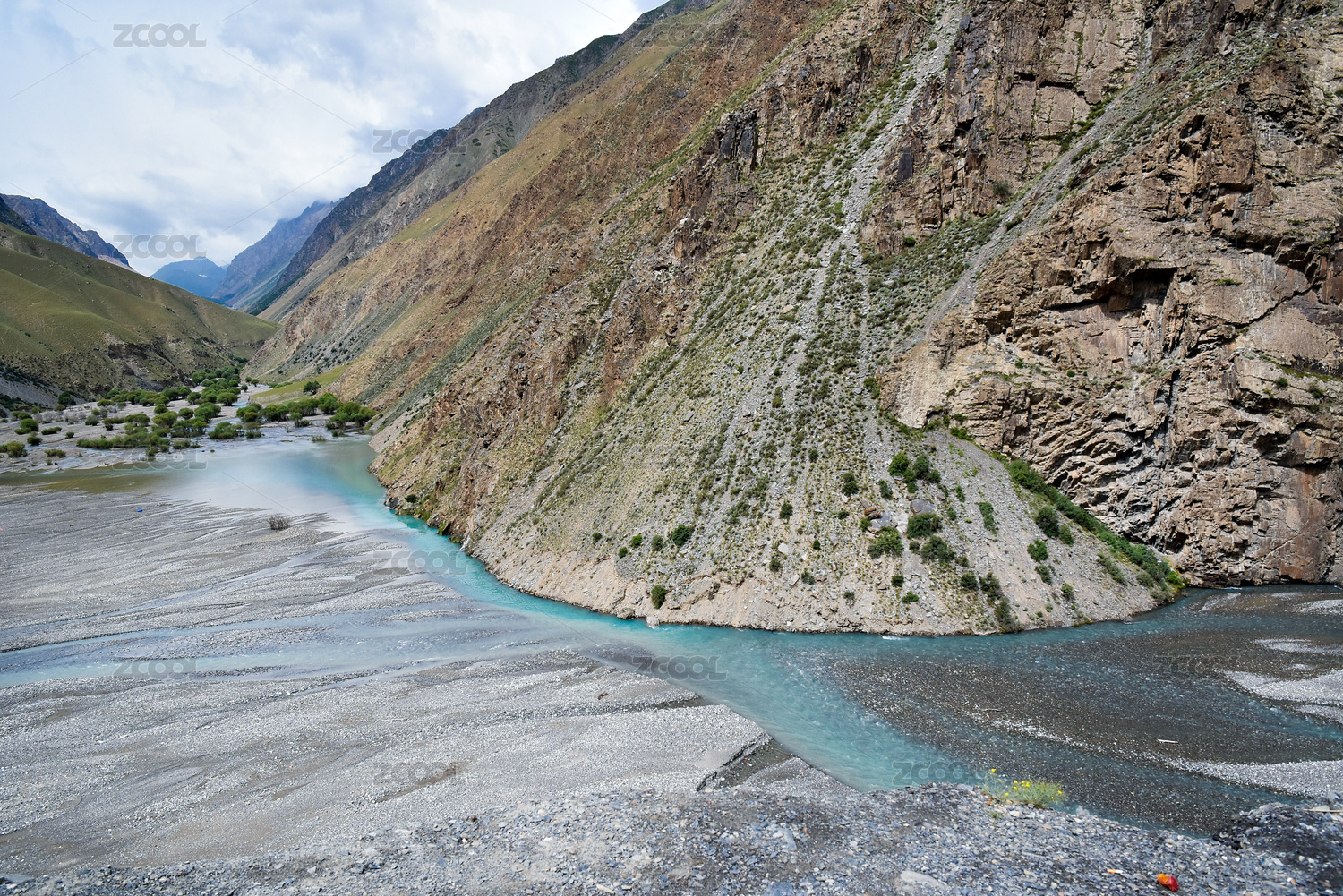 中国新疆独库公路旁山间河流自然风光