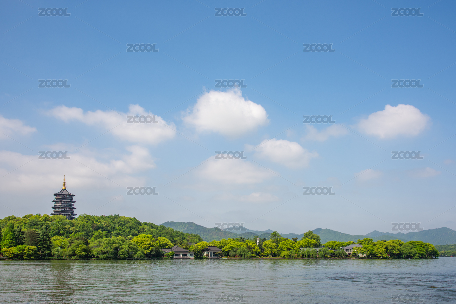 杭州,西湖,户外,风景,远山,树木,湖景,倒影,垂柳,龙舟
