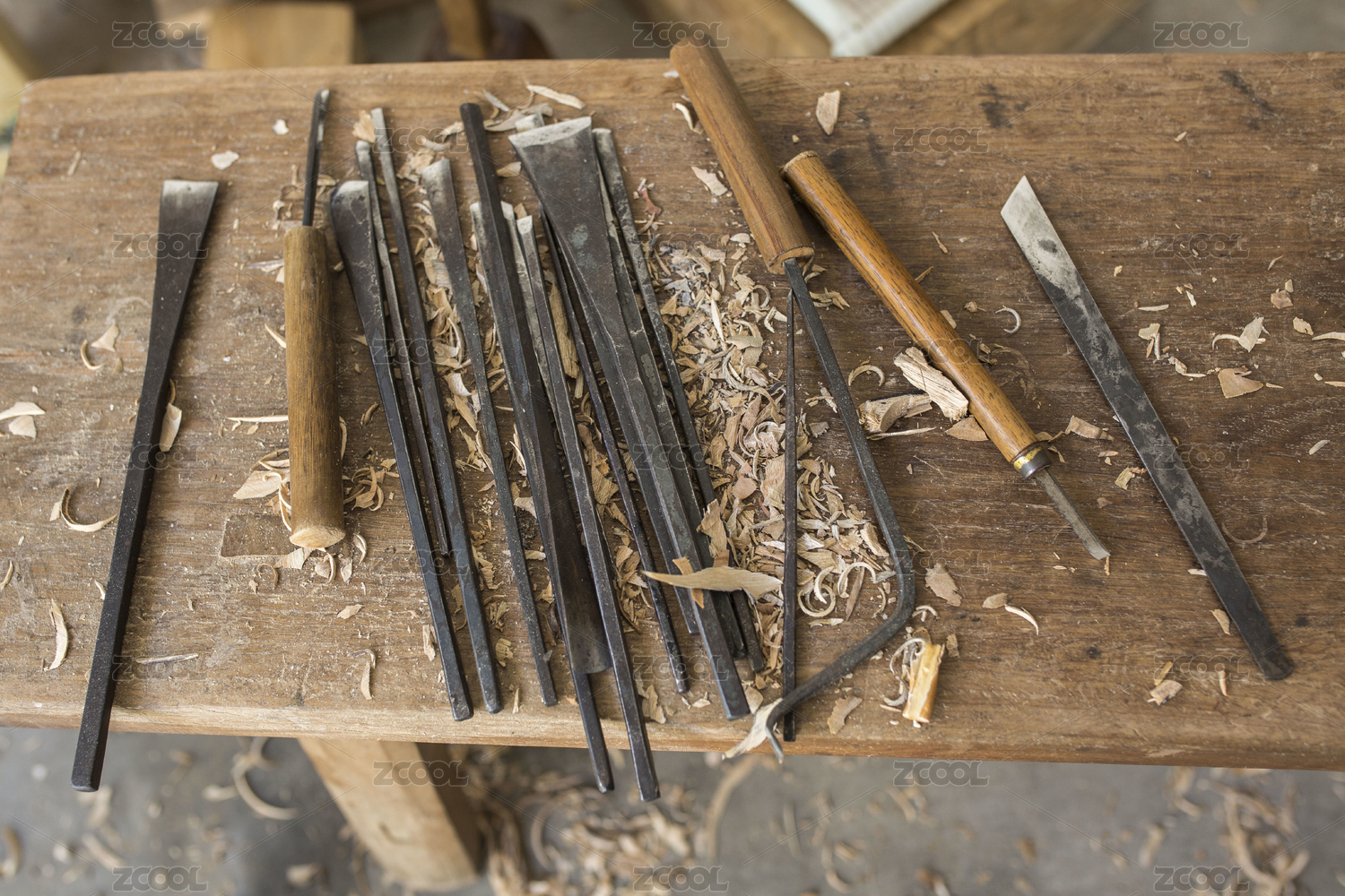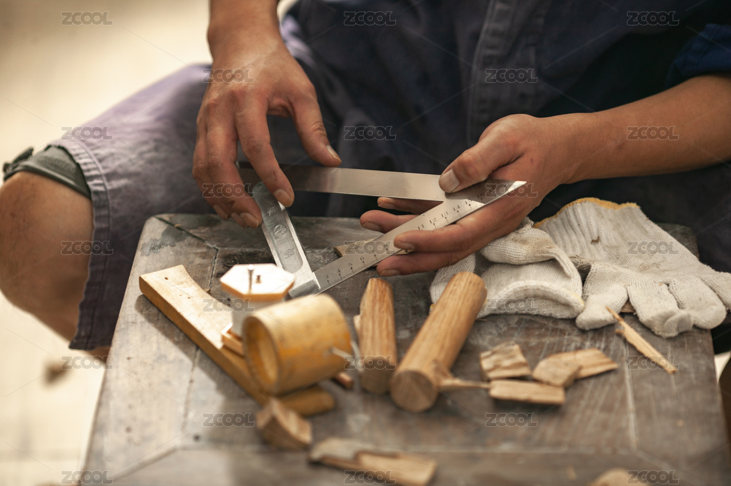 工匠精心雕琢木块的场景